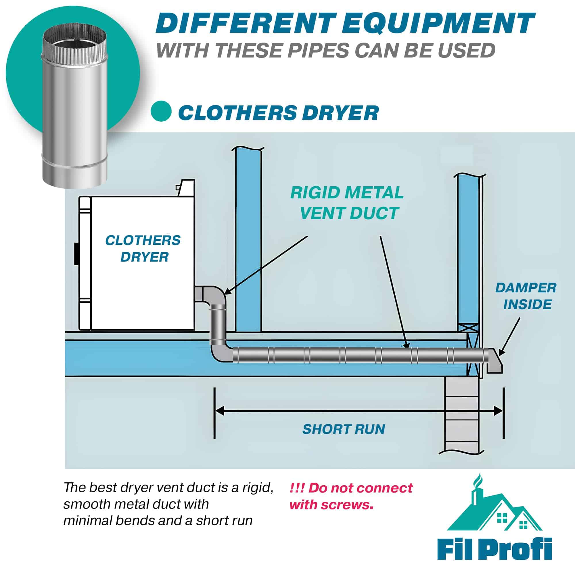 FilProfi – Tubo de ventilación redondo para secadora de 5