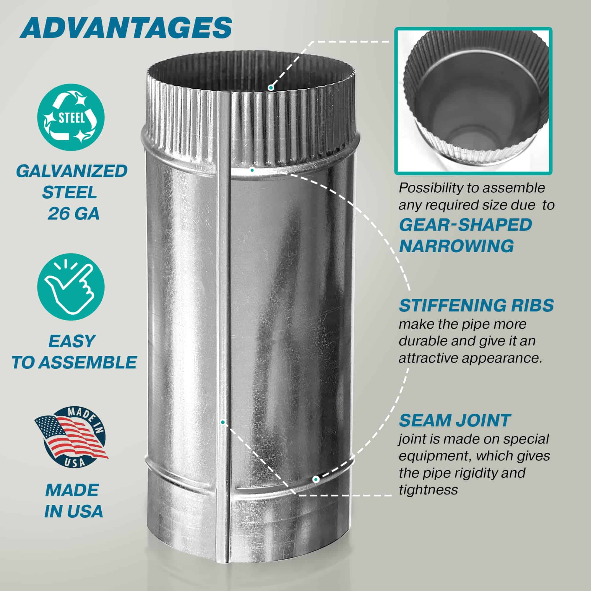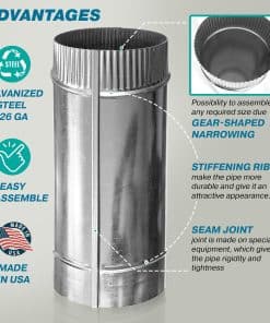 Con el tubo de ventilación redondo FilProfi de 5 pulgadas, extensible a 12 pulgadas, puedes estar seguro de que obtendrás un producto duradero y de alta calidad para tu sistema de ventilación. Fabricado en acero galvanizado de calibre 26 con un revestimiento resistente a la oxidación, este conducto asegura una máxima durabilidad para un uso prolongado. Su tamaño estándar de 5 pulgadas de diámetro y 11 – 12 pulgadas de longitud lo hace fácil de instalar en la mayoría de los sistemas de ventilación disponibles en el mercado. Además, su extremo estriado garantiza un ajuste seguro y una conexión hermética con otros componentes de conductos, asegurando una excelente eficiencia en la circulación del aire. Este tubo es perfecto para su uso en secadoras, sistemas de calefacción, campanas extractoras y conductos de escape, tanto en entornos residenciales como comerciales. Además, al ser fabricado en EE.UU., puedes confiar en su calidad y durabilidad. Además, viene con una garantía de 12 meses para tu tranquilidad. ¡Hazte con el tubo de ventilación FilProfi hoy mismo y mejora la circulación del aire en tu hogar o negocio!