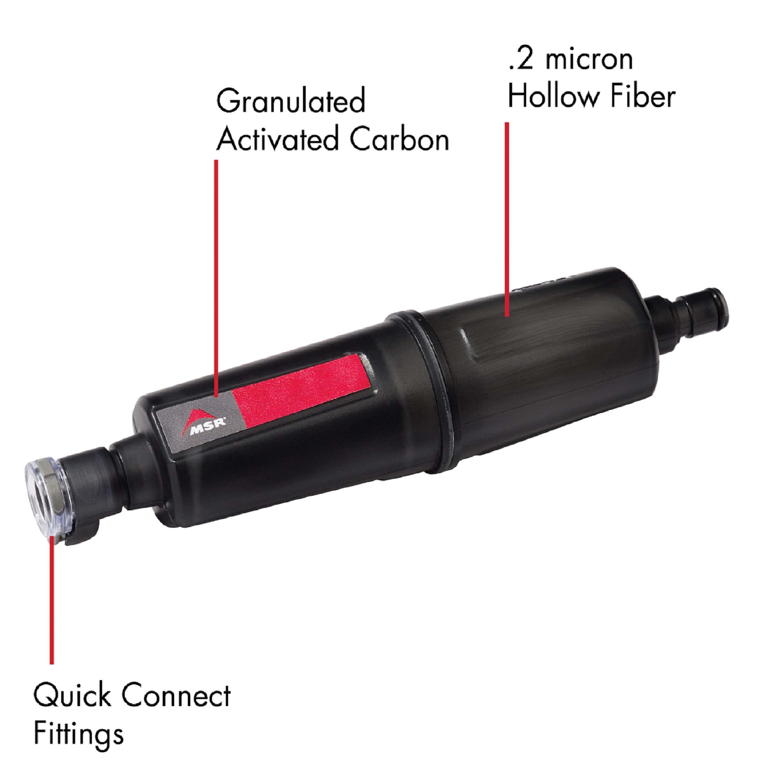 El Sistema de Filtración de Agua de Emergencia para Hogar de MSR es el filtro de agua de emergencia perfecto para cualquier persona que esté construyendo un kit de preparación para desastres en el hogar. Este sistema de filtro de agua en línea fácil de usar se enrosca en los grifos estándar del hogar o se puede conectar en línea a un sistema de agua por gravedad, proporcionando agua limpia, segura y de alto flujo. Utilizado por el ejército de EE. UU. durante más de una década, este filtro de agua está construido con una carcasa resistente soldada con ultrasonidos para mayor durabilidad. El filtro utiliza tecnología de fibra hueca con un tamaño de poro de filtro de 0,2 micrones y carbón activado para proporcionar agua confiable, segura y sin sabor con una tasa de flujo de 1,2 litros por minuto. El empaque sellado herméticamente protege el filtro durante el almacenamiento a largo plazo, para que esté listo para usar cuando ocurra una emergencia. Efectivo contra: bacterias (99.9999%), protozoos (99.9%) y partículas (suciedad, microplásticos). Cumple con la Norma y Protocolo de la EPA de EE. UU. para probar Purificadores Microbiológicos y el estándar de prueba P231 del protocolo NSF para bacterias y protozoos. Incluye el Filtro de Agua en Línea MSR Thru-Link, manguera de entrada con adaptador universal de grifo, conector rápido hembra (CPC), y manguera de salida con conector rápido macho (CPC); mide 7.5×1.5×1.5 pulgadas y pesa 2.56 onzas. El cartucho filtrará 1,000 litros (264 galones) antes de necesitar ser reemplazado. Garantía limitada del fabricante por 3 años.