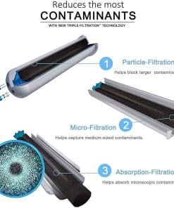 2. Certificado para reducir quistes resistentes al cloro, plomo y otros 50 contaminantes. Reduce el 99% del ácido perfluorooctanoico (PFOA) y sulfonato de perfluorooctano (PFOS).