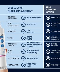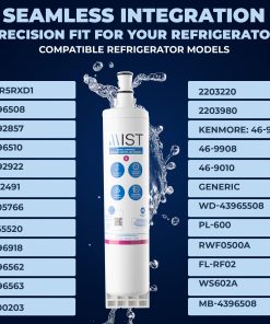 Este filtro de agua de repuesto Mist 4396508 para Whirlpool EDR5RXD1 es una excelente opción para mantener el suministro de agua limpia y purificada en su hogar. Con su diseño meticulosamente elaborado, este filtro está diseñado para brindar agua excepcionalmente pura al reducir el 99% de cloro, metales pesados y otras impurezas presentes en el agua del grifo. Además, este filtro de agua es perfectamente compatible con varios modelos de refrigeradores Whirlpool, Kenmore y Kitchenaid, lo que lo convierte en una solución conveniente y efectiva para garantizar la calidad del agua potable en su hogar. Certificado por NSF International, este filtro asegura la pureza del agua y la integridad libre de plomo, cumpliendo con los estándares de calidad y seguridad requeridos. Con una vida útil de 6 meses y una fácil instalación sin herramientas, este filtro de agua es una opción duradera y conveniente para su hogar. Mantenga un registro preciso de cuándo reemplazar su filtro con las pegatinas de instalación mensuales incluidas. Disfrute de agua pura y refrescante con este filtro de agua de repuesto premium para su refrigerador.