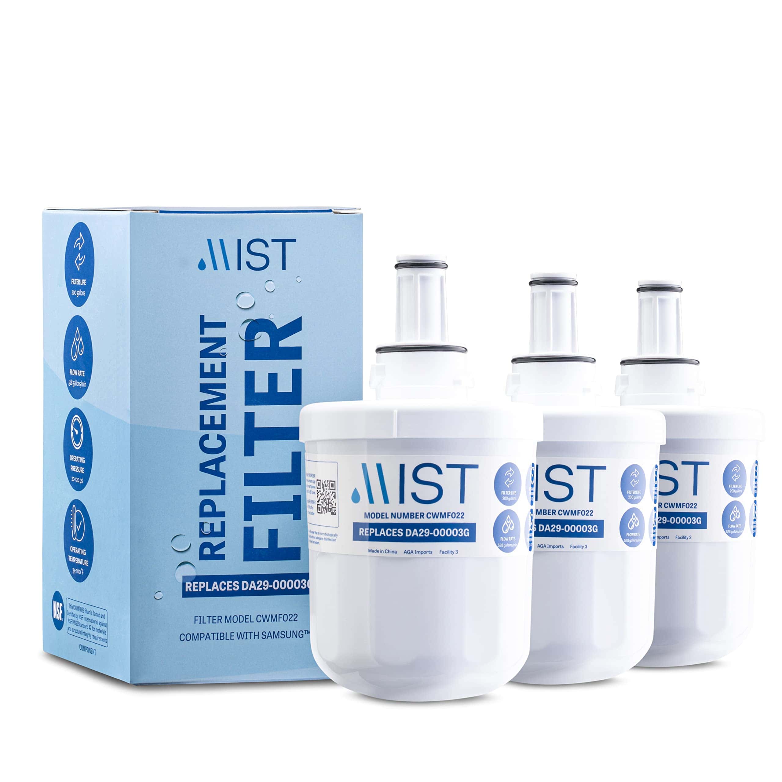 2. Perfectamente compatible: Diseñado para un ajuste perfecto, Mist utiliza tecnología de medición avanzada para replicar con precisión las especificaciones originales utilizando maquinaria de automatización industrial. Este filtro de agua de refrigerador Samsung de repuesto es compatible con: Aqua-Pure Plus DA29-00003G, DA29-00003F, DA29-00003B, DA29-00003A, HAFCU1, HAFIN1, HAFIN2, CWMF022, RF267, WFC2201, HDX FMS-1, WFC2201, WSS-1, WD-DA29-00003G, AQF-00003G-P, PL-700, FL-RL11-S, WS611B-A, EFF-6011A, RWF1010, MB-00003G-P.