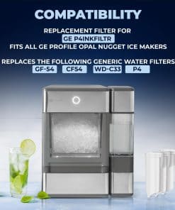 Nuestro filtro de agua Mist P4INKFILTR es el reemplazo perfecto para tu dispensador de hielo Opal GE, ofreciendo agua excepcionalmente pura al reducir un 99% de cloro, metales pesados y otras impurezas. Diseñado para un ajuste perfecto, Mist es compatible con todas las versiones del Opal Nugget Ice Maker, incluidos Opal 2.0 y Opal Ice Dispenser. Disfrute de la conveniencia de una instalación sin herramientas y un rendimiento duradero con nuestro filtro de agua para refrigeradores. Incluye pegatinas mensuales de instalación para llevar un control de cuándo reemplazar el filtro.