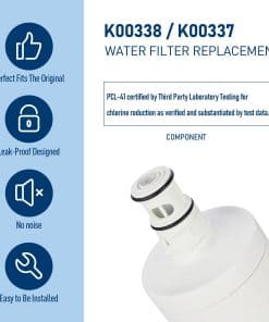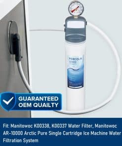 El Filtro de Agua para Fabricador de Hielo Manitowoc K00338/K00337 Arctic Pure, compatible con el Fabricador de Hielo Manitowoc AR-10000, es la solución perfecta para obtener agua potable fresca y limpia en su hogar u oficina. Este filtro reduce el cloro y el plomo en un 99.5%, mientras inhibe el crecimiento de incrustaciones, garantizando que su agua esté libre de impurezas dañinas. Con una capacidad para eliminar más del 99% de sólidos suspendidos en el agua, así como sedimentos de 0.5 micrones, óxido y sabores y olores desagradables como el cloro, este filtro asegura que su agua sea segura y sabrosa para beber. Su diseño de giro y bloqueo permite una instalación rápida y sencilla, sin necesidad de herramientas, y evita cualquier filtración de agua no deseada. Además, su precio accesible lo convierte en una opción rentable en comparación con las marcas de renombre, sin comprometer la calidad. No dude en contactarnos si no está completamente satisfecho con su compra, ¡estamos listos para satisfacer sus necesidades de bebida segura! Recuerde restablecer el indicador de vida útil del filtro presionando la tecla CLEAN durante seis segundos una vez que haya reemplazado el cartucho del filtro para mantener un filtrado efectivo y seguro.