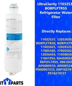 Si deseas asegurarte de que tu agua potable esté limpia y pura, el filtro de agua de reemplazo 11032531 BORPLFTR55 es la solución perfecta. Este filtro de alta calidad está diseñado para adaptarse perfectamente a los refrigeradores y es fácil de instalar y reemplazar. El 11032531 BORPLFTR55 ayuda a mejorar el sabor y la calidad de tu agua potable filtrando impurezas como cloro, plomo y mercurio. Con su tecnología avanzada de filtración, puedes estar seguro de que tu agua está limpia, fresca y segura para beber. Entonces, si deseas disfrutar de los beneficios de un agua potable limpia y pura, elige el filtro de agua de reemplazo 11032531 BORPLFTR55.