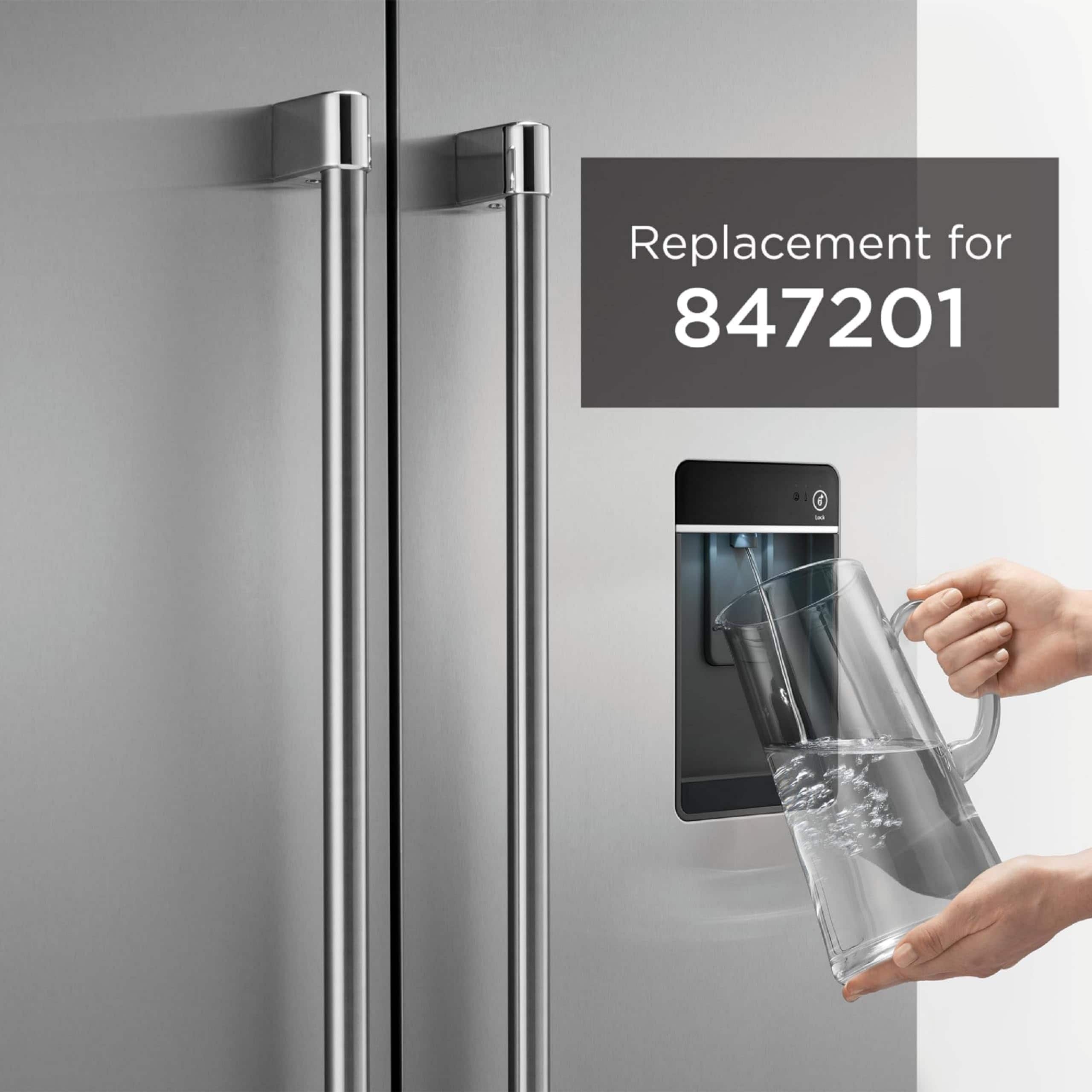 Filtro de Agua para Refrigerador Fisher & Paykel OEM 847201 Este filtro de agua elimina productos químicos y contaminantes de su agua potable, resultando en agua con sabor y olor limpios. Recomendamos un nuevo filtro cada seis meses para una óptima calidad y flujo de agua potable. Utilice con Refrigerador Fisher & Paykel. Por favor, verifique su filtro para el número de parte antes de comprar accesorios para refrigeradores. Utilice solo filtros de agua genuinos de Fisher & Paykel. Viva una vida mejor con Fisher & Paykel Calidad premium y excelente rendimiento. Flujo constante, agua de calidad óptima con excelente sabor. El filtro de mejor rendimiento con el mayor porcentaje de eliminación de contaminantes de su agua potable. Reduce óxido, suciedad, sedimento, contaminantes, sabor y olor a cloro. Reduce quistes, plomo, mercurio y herbicidas selectos. Estos filtros de agua para refrigeradores mejoran la calidad y sabor del agua.