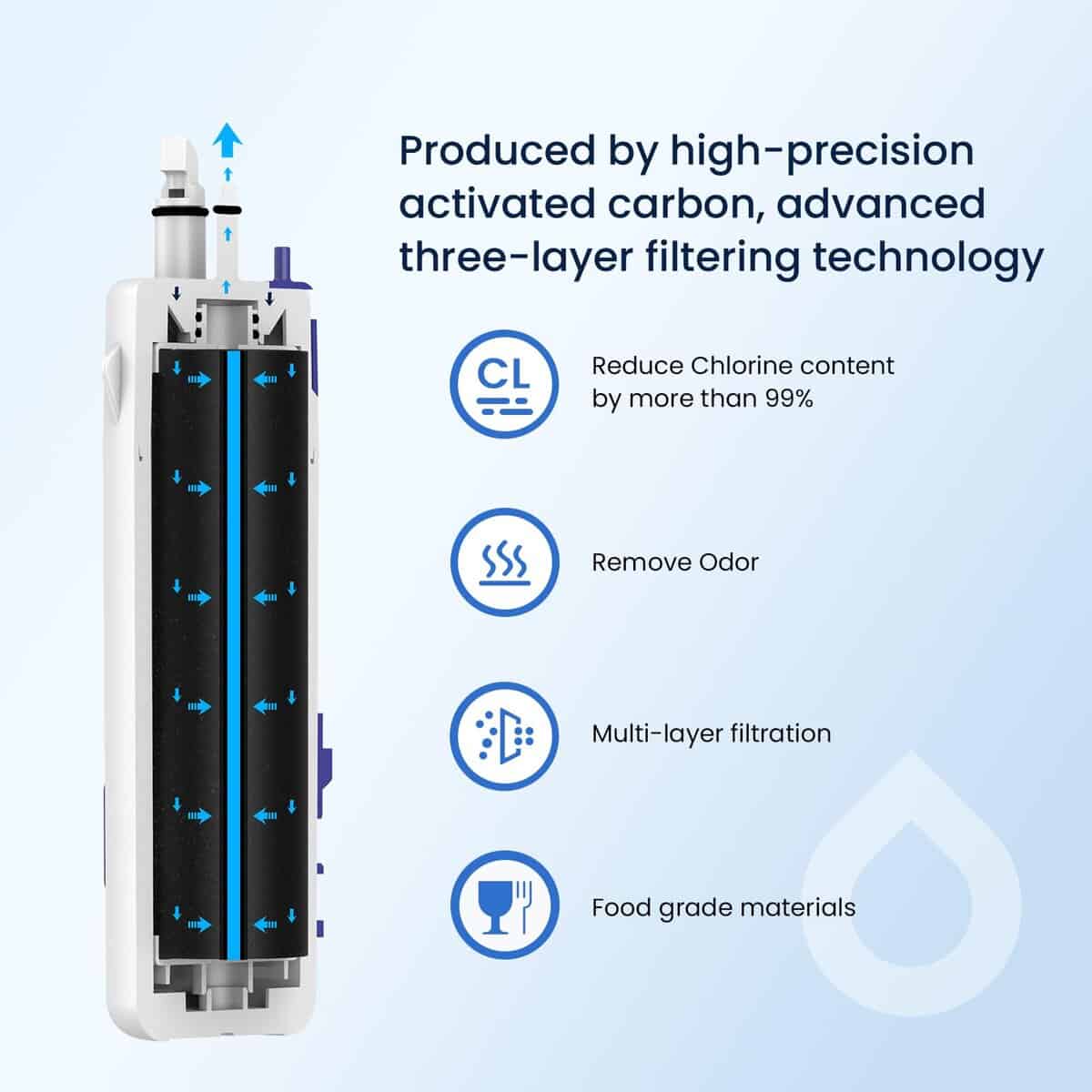 Filtro de agua de repuesto GLACIER FRESH con una duración de uso prolongada de hasta 6 meses o 200 galones. Compatible con modelos W10295370, W10295370A, W10276924, W10291030, WRL767SIAM, WRS322FDAB, WRS325FDAB, WRS526SIAH, WRS537SIAB, P4RFWB, P5WB2L, PS2378001, 46-9930, 46-9081. Proporcione agua fresca y saludable con un sabor delicioso y refrescante para beber, cocinar, preparar café o té. Proteja la salud de usted y su familia y mejore la felicidad de la vida.