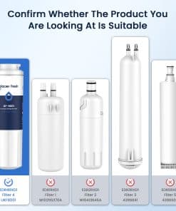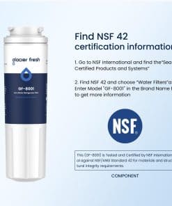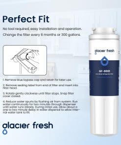 Reemplace su filtro de agua de refrigerador con el GLACIER FRESH UKF8001 para solucionar problemas de seguridad del agua a un menor costo. Hecho con materiales de alta calidad y un diseño perfecto para un ajuste sin fugas. Certificación de alta calidad y compatibilidad con varios modelos de filtro.