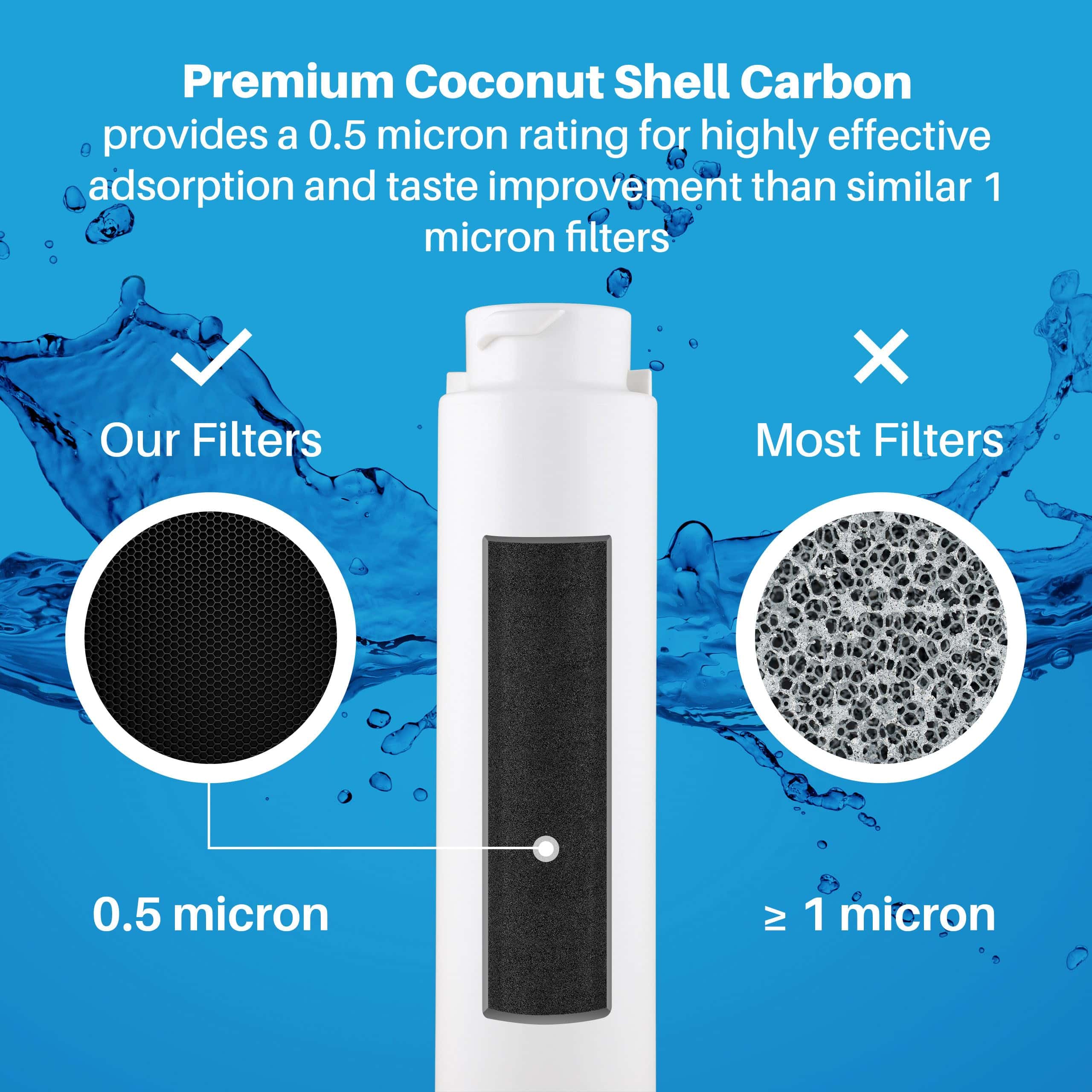 El filtro de agua para refrigerador SpiroPure SP-FREP01 certificado por la NSF es una alternativa de alta calidad para cualquier refrigerador que actualmente use el filtro de agua para refrigerador Frigidaire EPTWFU01 PureSource Ultra II o Electrolux EWF02 PureAdvantage. Los filtros certificados por la NSF 42 y 372, libres de BPA, de grado alimenticio, utilizan carbón de cáscara de coco premium para obtener agua más saludable, de mejor sabor y olor de tu refrigerador.