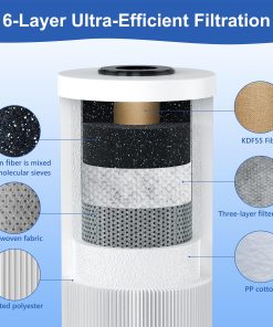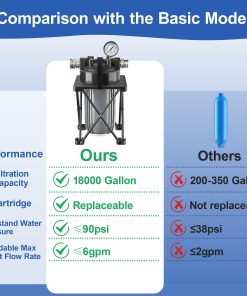 El filtro de agua para RV de Kintim de 6 capas con soporte y filtración de 0.5 micrones es una solución avanzada para garantizar agua potable segura mientras viaja en su RV. Su estructura de filtración de múltiples etapas reduce de manera efectiva los olores, impurezas y una amplia variedad de contaminantes, incluidos el 99% de cloro, cloroformo, sedimentos, plomo, hierro, manganeso, arsénico y otros productos químicos dañinos. La precisión de filtración de 0.5 micrones elimina partículas finas y contaminantes del agua, mejorando significativamente su calidad. Su alta tasa de flujo de 6 GPM garantiza un suministro rápido y constante de agua pura, mientras que la carcasa duradera y resistente puede soportar hasta 90 PSI de presión. Con un cartucho de 10 x 4.5 pulgadas, puede filtrar hasta 25,000 galones de agua, lo que proporciona un rendimiento duradero sin la necesidad de reemplazos frecuentes. Además, el paquete incluye todo lo necesario para una fácil instalación y uso continuo.
