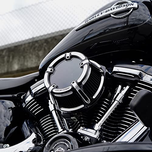 Filtro de aire de aluminio forjado con ventana de policarbonato que te permite ver el funcionamiento interno de tu sistema de admisión de aire. Placa de respaldo de aluminio forjado con una tecnología de placa de respiradero interna patentada que elimina la necesidad de mangueras externas o hardware para un sistema prácticamente cerrado. La entrada de aire de radio proporciona un flujo de aire no obstruido hacia el motor. El filtro de alto rendimiento está fabricado con algodón rojo pre-aceitado para un flujo y filtración óptimos. El filtro es lavable y reutilizable, kits de recarga disponibles por separado. Estos filtros de aire han recibido una Orden Ejecutiva de California (Orden Ejecutiva D-639-8).