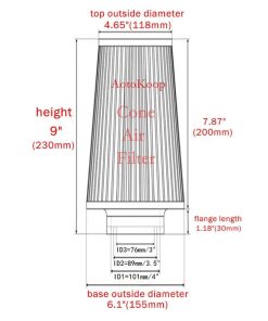Filtro de aire cónico de alto rendimiento AotoKoop, 3″ o