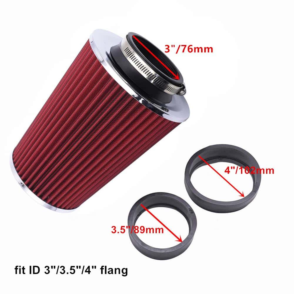1. Paquete incluye 2 mangas reductoras de tamaño, se adapta a tubos de admisión con entrada de 3/3.5/4 pulgadas (76 mm / 89 mm / 101 mm).