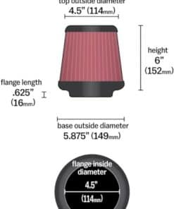 Los Filtros de Aire Universales con Abrazadera K&N están fabricados para una amplia variedad de aplicaciones y necesidades de filtración únicas. Los filtros de aire de alto flujo de rendimiento de K&N están diseñados para mejorar el rendimiento del motor aumentando el flujo de aire. A diferencia de los filtros de papel desechables que deben ser reemplazados con frecuencia, los Filtros de Aire K&N son lavables, reutilizables y están diseñados para durar toda la vida de su vehículo. Estos versátiles filtros están construidos con bridas de goma moldeadas ultra fuertes que absorben la vibración y permiten una sujeción segura. Disponibles en diseños redondos, cónicos (estilo cono) y ovalados, K&N ofrece miles de filtros con abrazadera en una multitud de formas y tamaños que se adaptan a muchas aplicaciones precisas. Únase a los millones de clientes que han ahorrado dinero y mejorado el rendimiento de sus vehículos al actualizar a la filtración K&N.