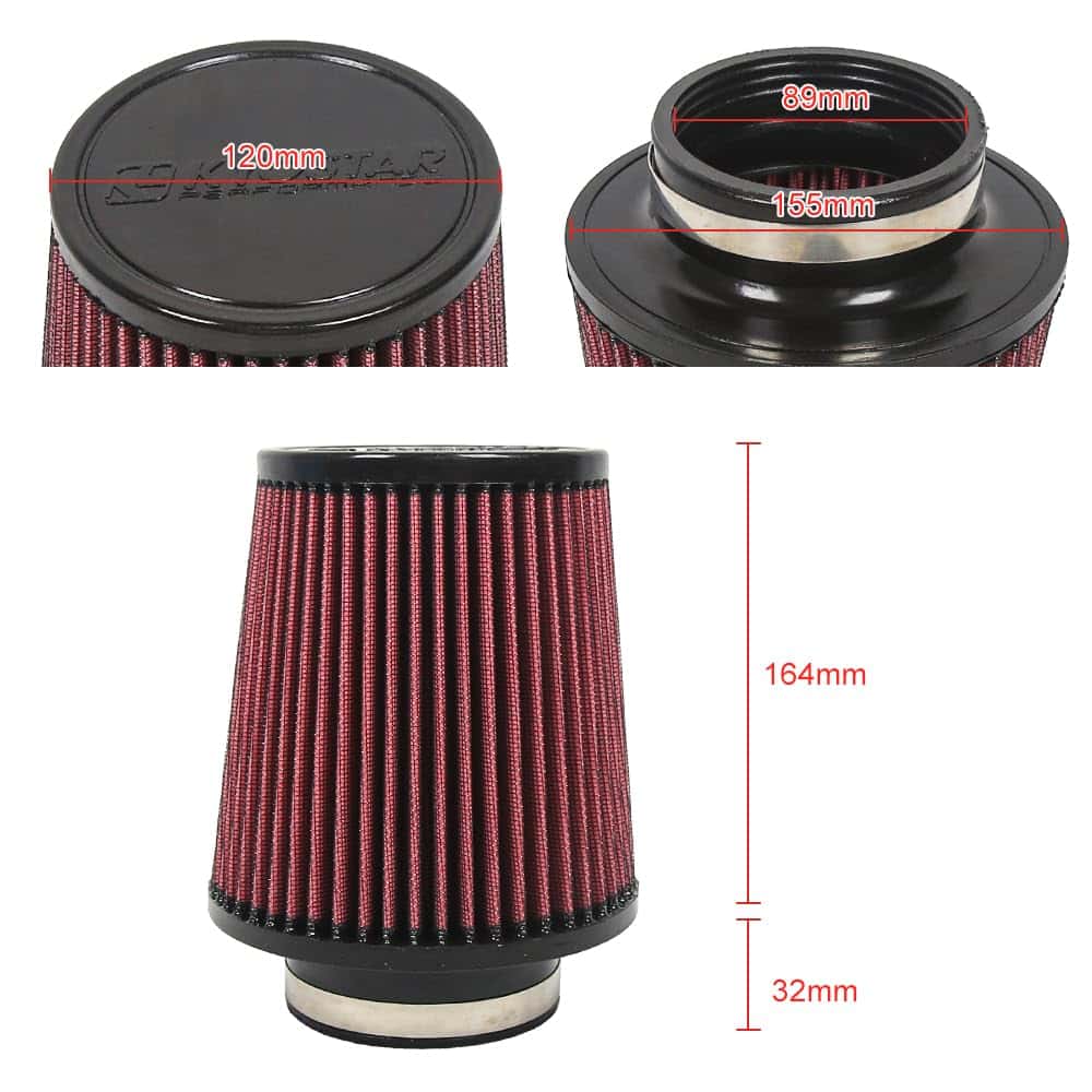 1. Filtro de aire de cono universal de admisión de aire frío de 89 mm.