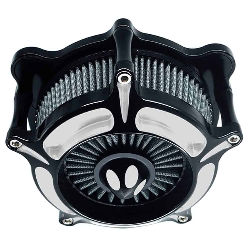 4. Filtro de aire de alto volumen con la mejor filtración incluido. Placa de respaldo revolucionaria que promueve un flujo de aire suave hacia el carburador/cuerpo del acelerador.
