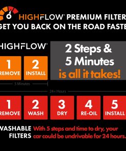 3. LISTO PARA INSTALAR – Fácil de usar y listo para instalar sin la molestia de lavar y re-aceitar. HIGHFLOW es una forma conveniente de mejorar su motor sin comprometer la calidad y el rendimiento.
