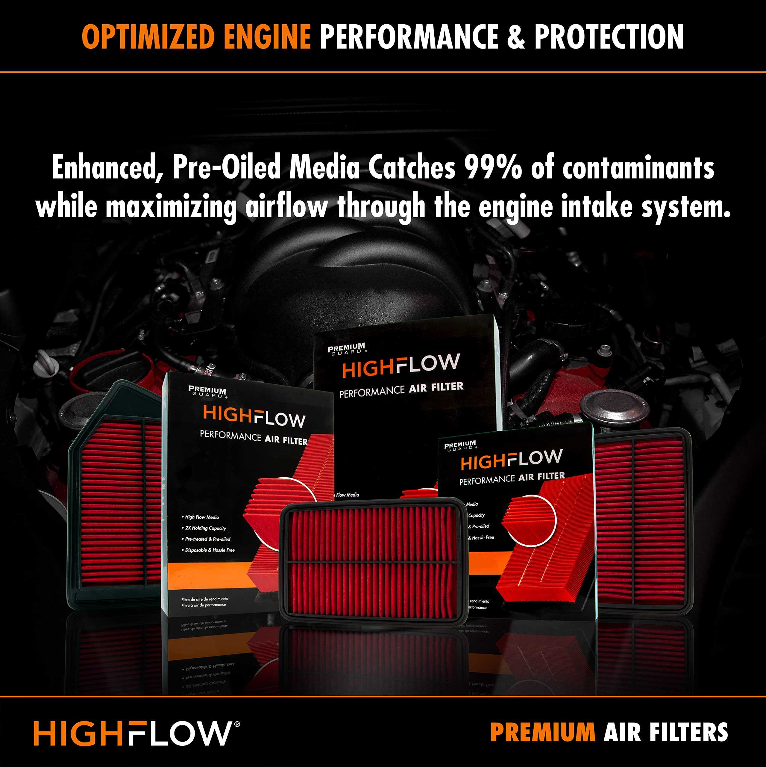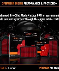 1. DISEÑADO PARA RENDIMIENTO. Los filtros de aire HIGHFLOW maximizan el flujo de aire limpio hacia el motor para un rendimiento óptimo. Proporciona hasta un 50% más de volumen de aire que los filtros de papel estándar cuando su motor está bajo carga y acelerando, y con la sólida protección de HIGHFLOW contra partículas peligrosas.