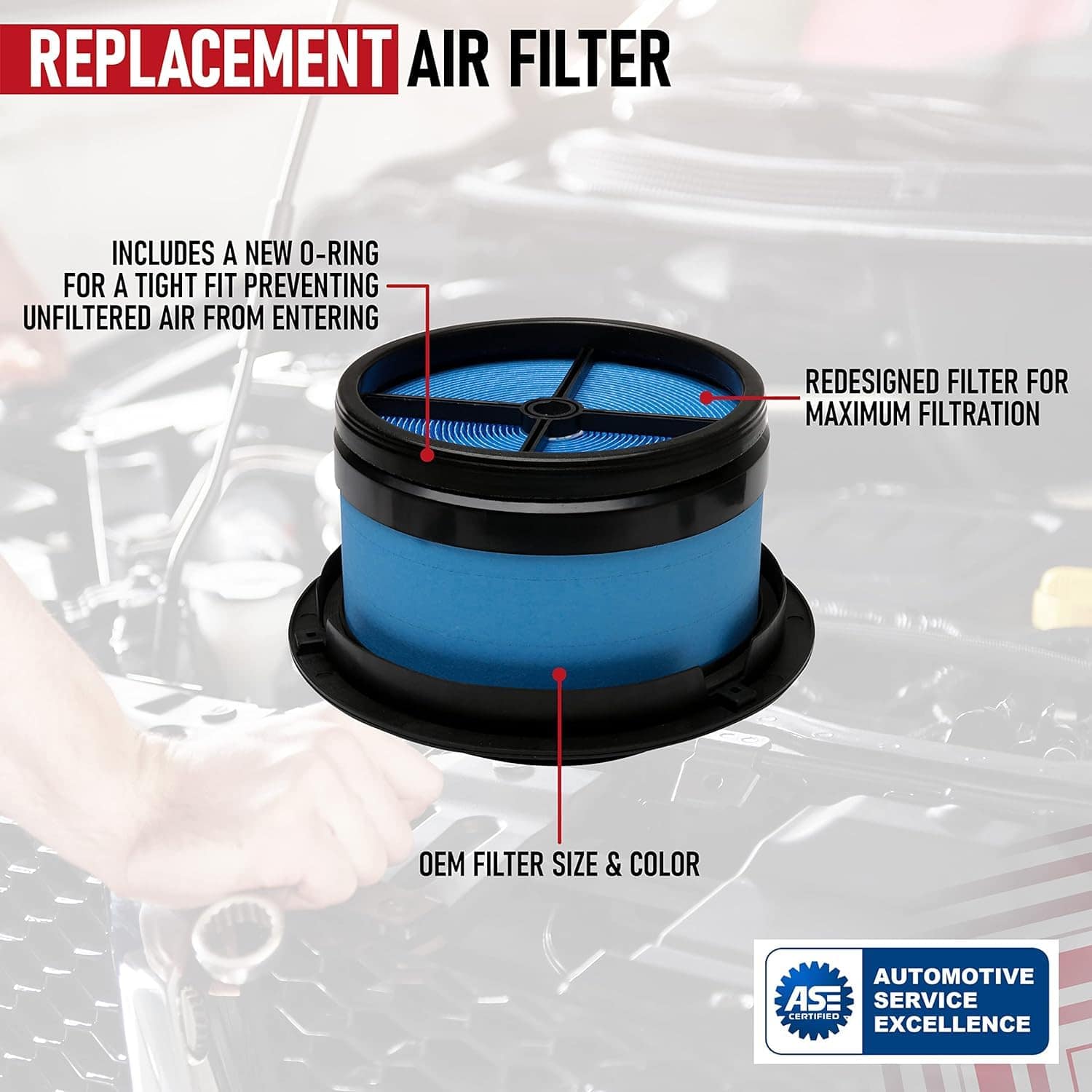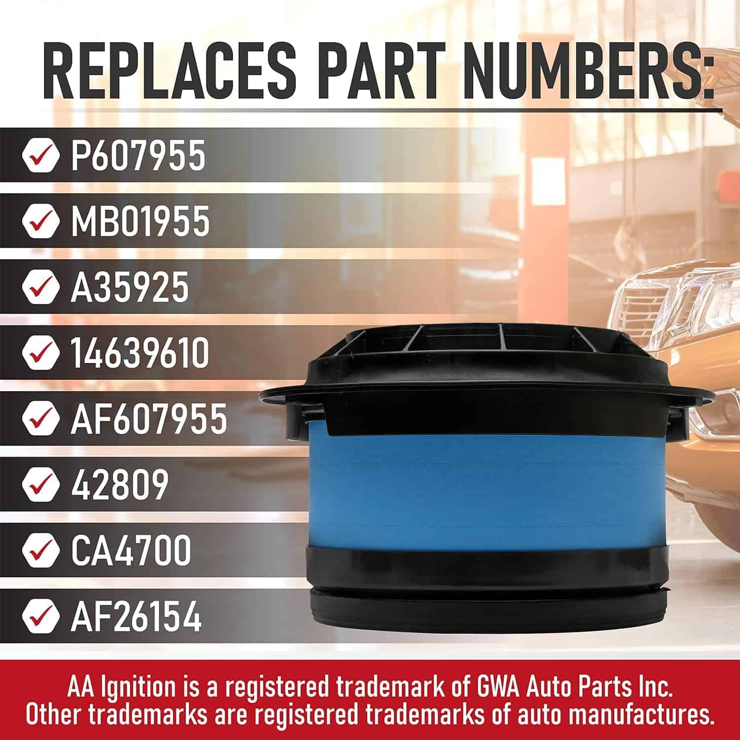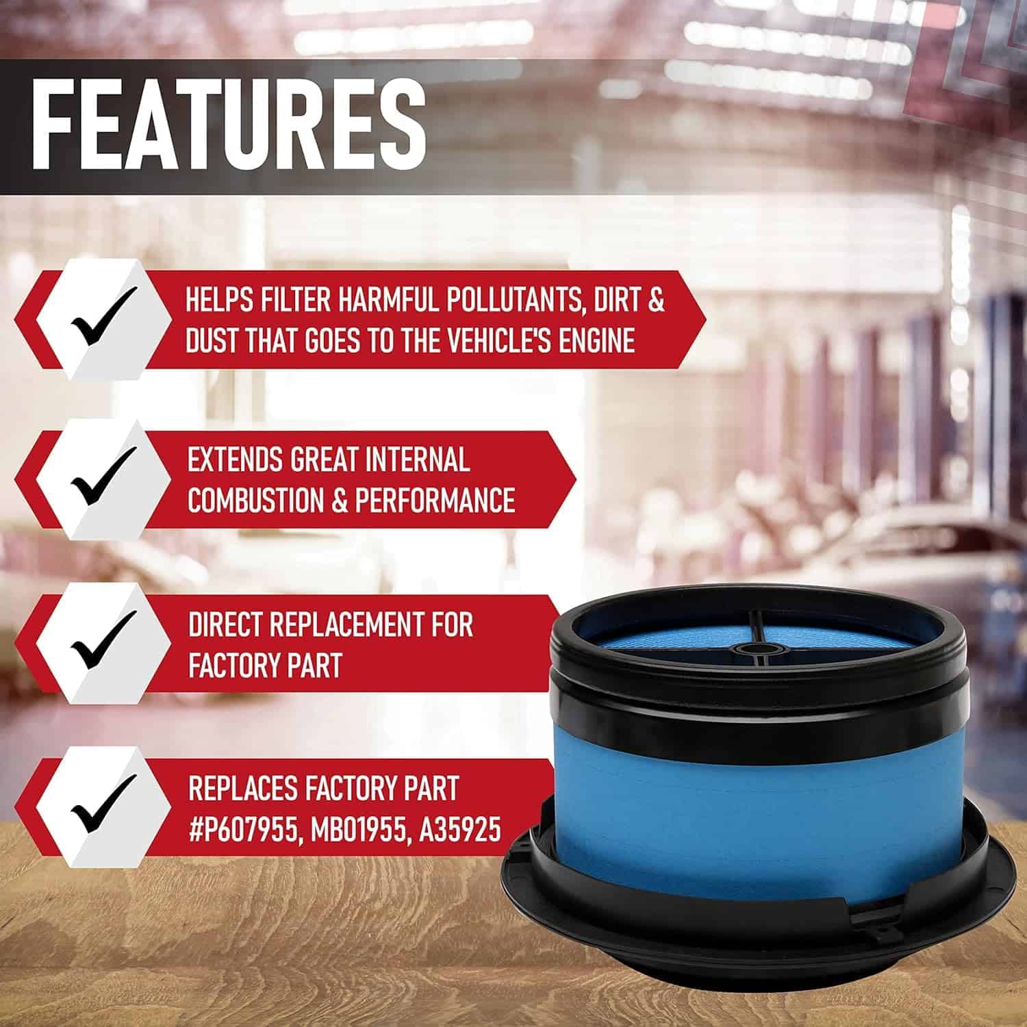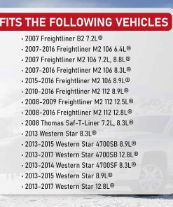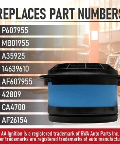 Filtro de aire de recambio compatible con vehículos Freightliner, Thomas Saf-T-Liner & Western Star – 2007 B2 7.2L | 2007-2016 M2 106 6.4L | 2007 M2 106 7.2L, 8.8L | 2007-2016 M2 106 8.3L | 2015-2016 M2 106 8.9L | 2008-2009 M2 112 12.5L | 2008-2016 M2 112 12.8L | 2008 Saf-T-Liner 7.2L, 8.3L | 2013 Western Star 8.3L | y más. Ver lista completa de vehículos. Reemplaza las partes P607955, MB01955, A35925, 14639610, AF607955, 42809, CA4700, AF26154 comúnmente encontradas en los modelos populares B2, M2, 4700SB, 4700SF, incluyendo años 06, 07, 08, 09, 10, 11, 12, 13, 14, 15, 16, 17. Si experimentas problemas con la luz de revisión del motor, fallos en el motor, aumento del consumo de combustible o mala aceleración, entonces es posible que necesites reemplazar el filtro de aire. Ajuste, calidad, acabado OEM – Aunque no es una parte OEM genuina, es un reemplazo directo y se verá, ajustará y funcionará exactamente como la parte de fábrica. Este kit de filtro de motor se puede encontrar fácilmente en la caja de aire del motor, colocada al frente y centrada en la entrada. Garantía de 2 años o 24,000 millas – Este filtro de aire viene con una garantía de 2 años o 24,000 millas, lo que sea primero. Si la parte falla en tu B2, M2, 4700SB, 4700SF o 4700SF dentro del período de garantía, simplemente contáctanos para un reemplazo.