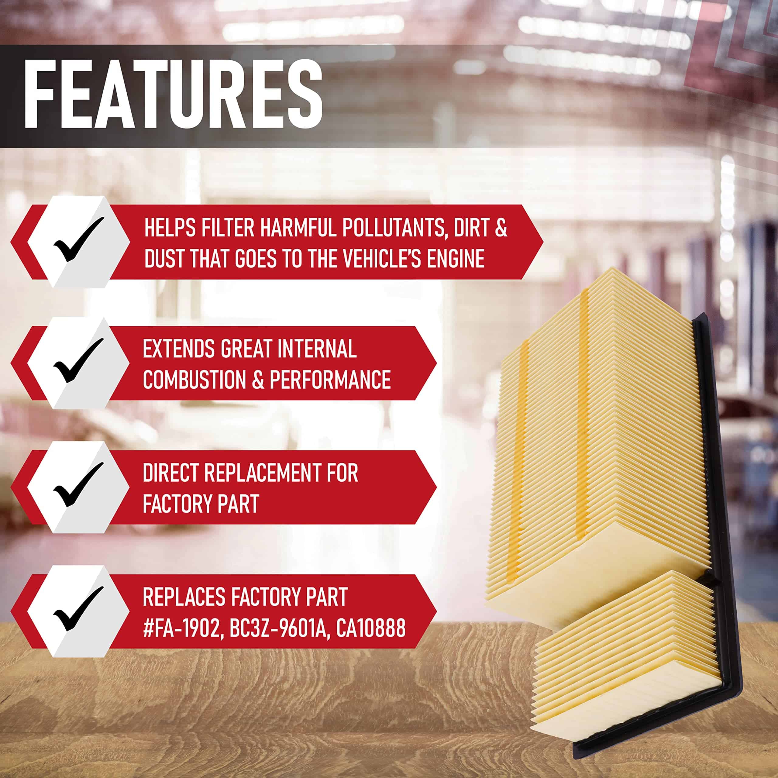 3. Reemplaza la pieza Motorcraft FA-1902, BC3Z-9601A, CA10888, A36109, 49902, XA6109, PA6109, FC4Z-9601-A, LAF6902, 33-5010 que se encuentran comúnmente en modelos populares como F250 Super Duty, F350 Super Duty, F450 Super Duty, F550 Super Duty, F650 y F750 de los años 11, 12, 13, 14, 15, 16.