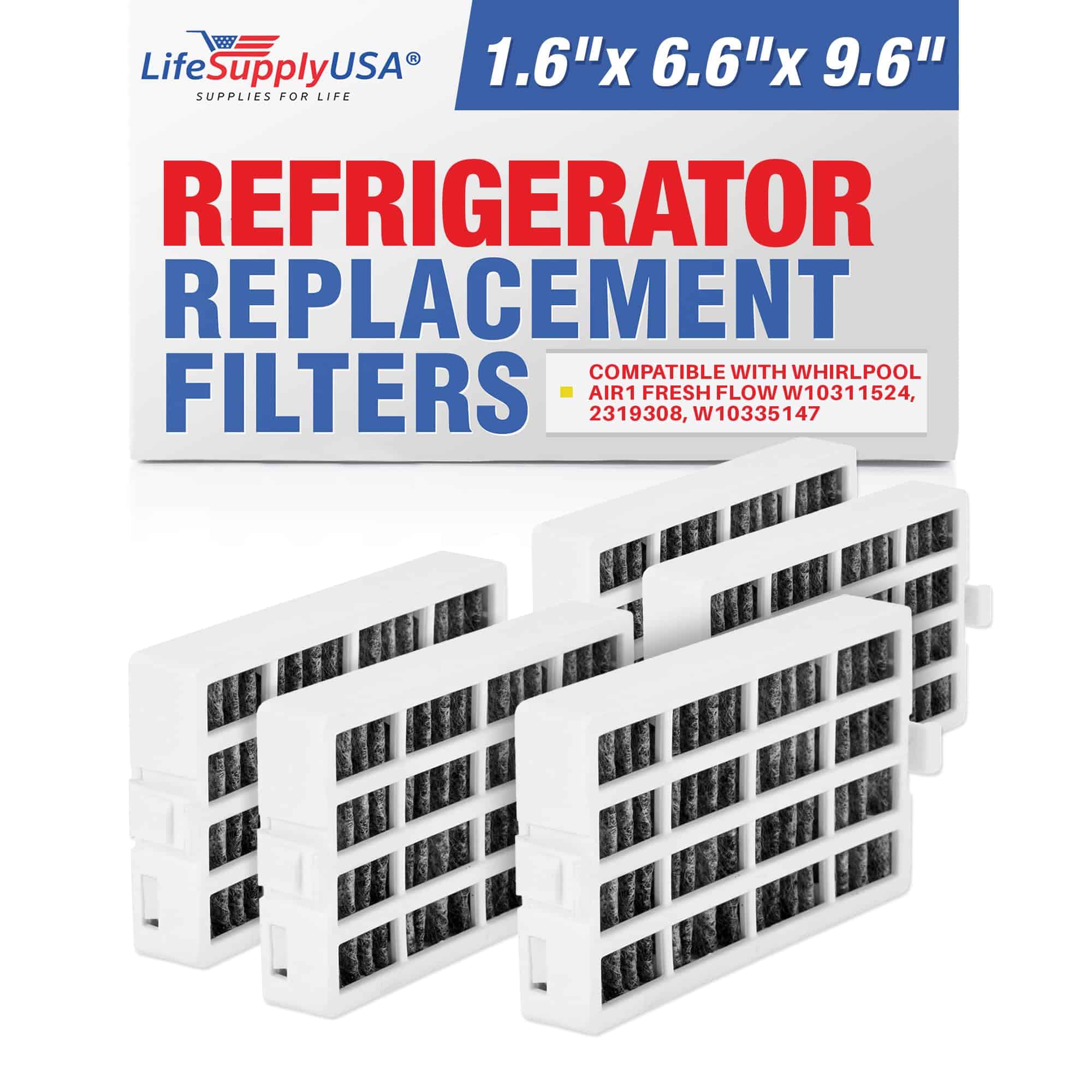 Filtro de repuesto para filtro de aire de refrigerador estilo Whirlpool Air-1 Fresh Flow. Se adapta a Whirlpool, Kitchen Aid, Maytag, Amana y Jenn Air. Se adapta a W10311524, 2319308 y W10335147. Por LifeSupplyUSA