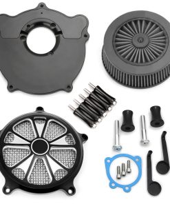 5. La placa de respaldo facilita el flujo suave de aire hacia el carburador o cuerpo de aceleración mientras oculta los respiraderos internos del cárter. Además, el filtro expuesto aumenta el flujo de aire. La instalación en los modelos Harley es sencilla, gracias a que el paquete contiene respiraderos internos del cárter, un filtro de aire de alto volumen reemplazable y todo el hardware de montaje necesario.