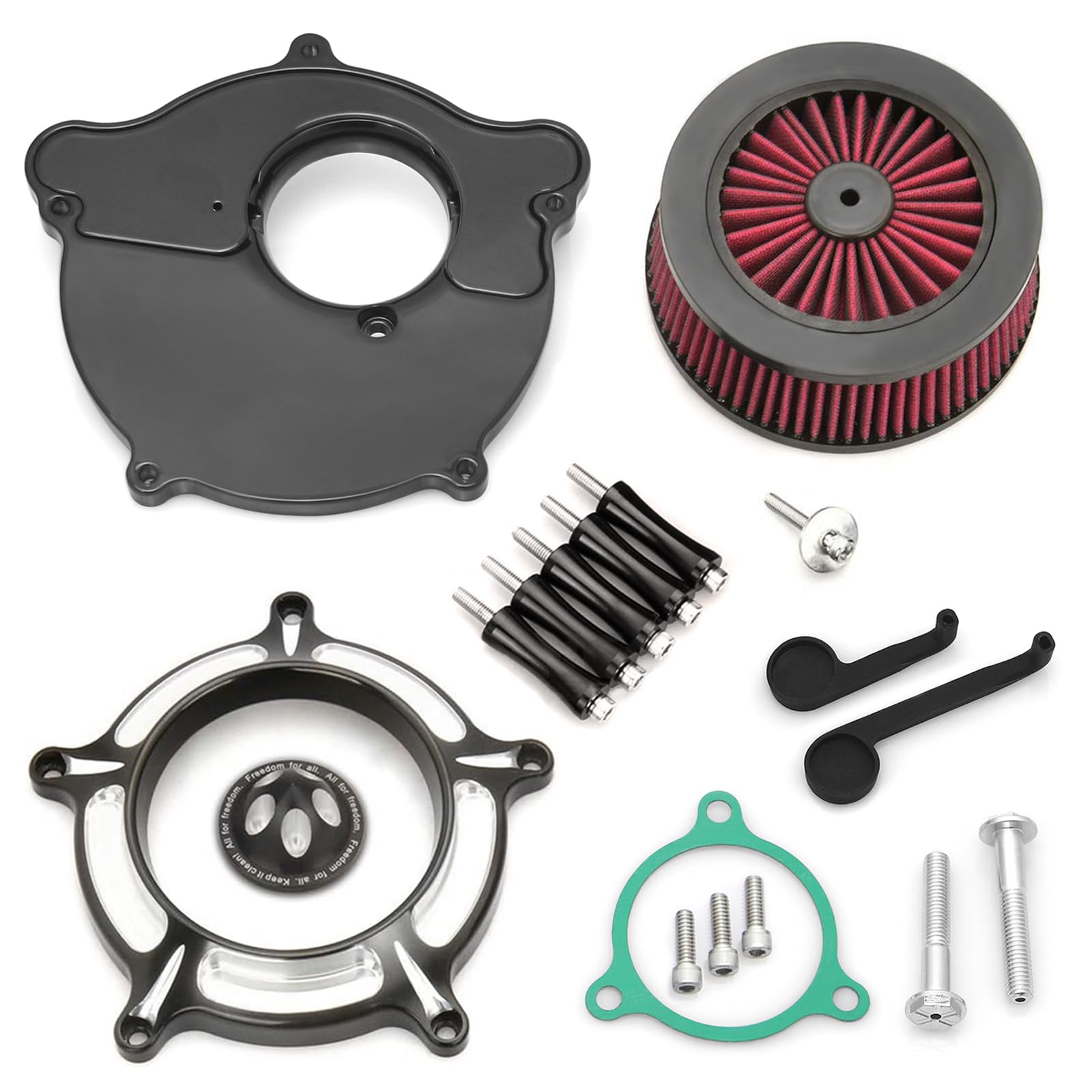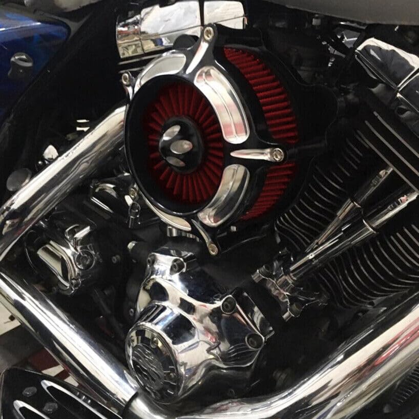 La placa de respaldo facilita el flujo suave de aire en el carburador o cuerpo del acelerador mientras oculta los respiros internos del cárter. Además, el filtro expuesto aumenta el flujo de aire. Instalarlo en modelos Harley es sencillo, gracias a que el paquete contiene respiraderos internos de cárter incorporados, un filtro de aire de alto volumen de repuesto y todo el hardware de montaje necesario.