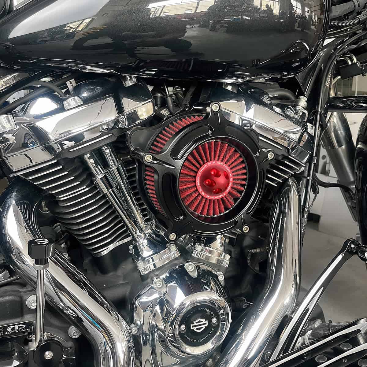 4. Modelo D : Compatible con Harley davidson 2017-UP M8 Milwaukee-Eight engine: 2017 en adelante FLT Touring / Bagger – FLHT / FLHR / FLHX / FLTR 2018 en adelante Modelos de limpiadores de filtros de aire Softail.
