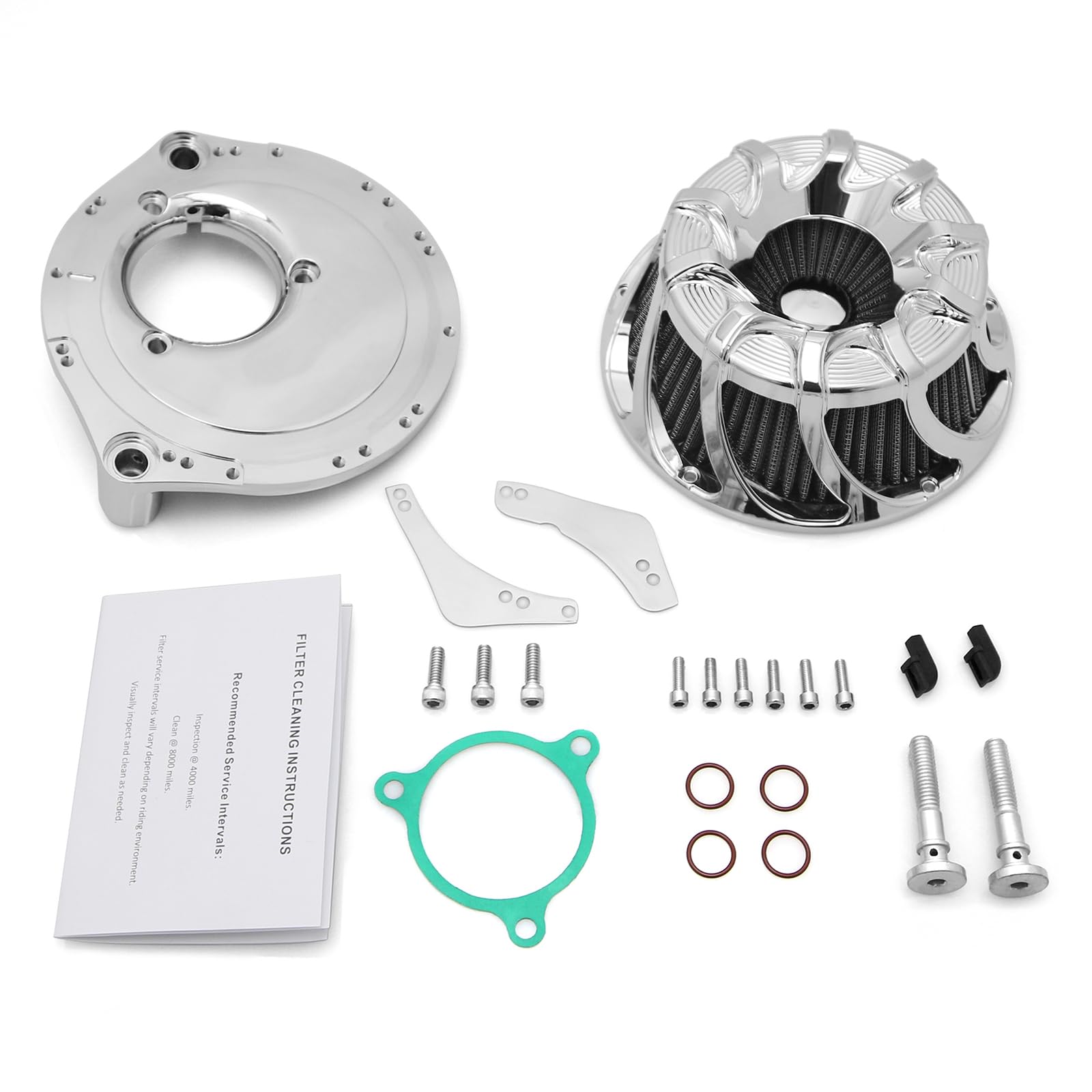 El filtro superior con pliegues invertidos y laterales plisados maximiza el flujo de aire. Las cajas de filtro de aire forjadas cuentan con trompetas de velocidad integradas que gritan rendimiento y mejoran la apariencia. La placa de respaldo forjada cuenta con una entrada de radio invisible y hardware para respiradero oculto. Filtro de aire invertido de repuesto también disponible. Incluye todo el hardware de montaje y juntas. Filtro de aire de alto flujo y reutilizable. Fabricado en China. Color: (como se muestra en la imagen). Material: Aluminio Billet.
