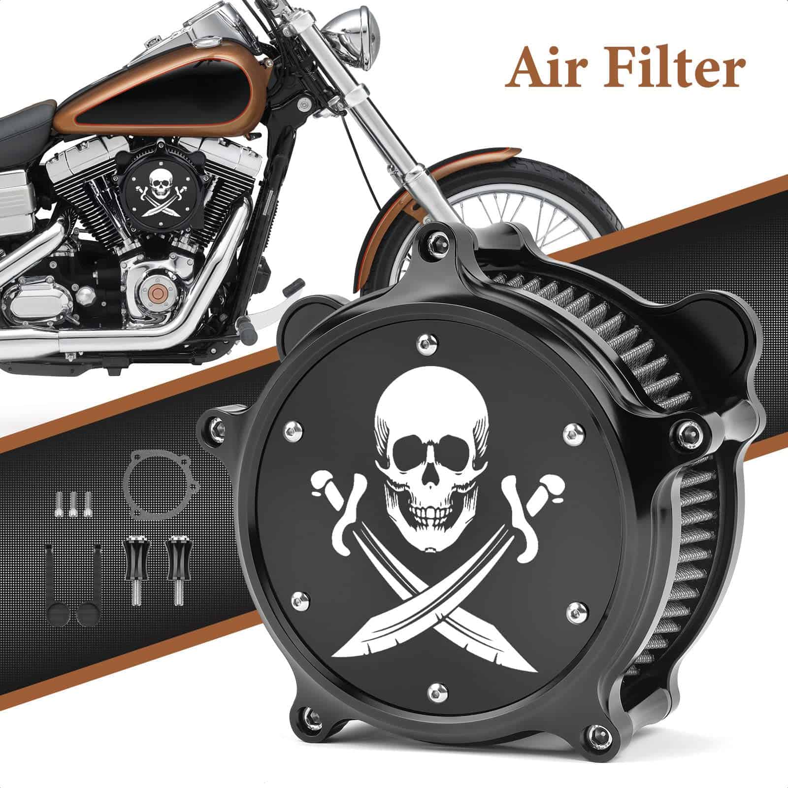 Este filtro de aire para motocicleta Bravema CNC Air Cleaner Intake System Kit es compatible con una amplia gama de modelos Harley, incluidos Dyna, FXR, Softail, Touring, y más. Su diseño desmontable con panel de logotipo de calavera lo hace único y elegante, añadiendo un toque sofisticado y moderno a tu motocicleta. Fabricado con aluminio de alta calidad mecanizado por CNC, este filtro de aire garantiza durabilidad y fiabilidad en el rendimiento de tu motocicleta. Además, su sistema de filtración de primera categoría asegura que tu motocicleta funcione a su nivel óptimo en todo momento. Este kit también incluye todos los accesorios necesarios para un montaje sencillo y rápido, lo que lo convierte en la actualización perfecta para cualquier entusiasta de Harley.