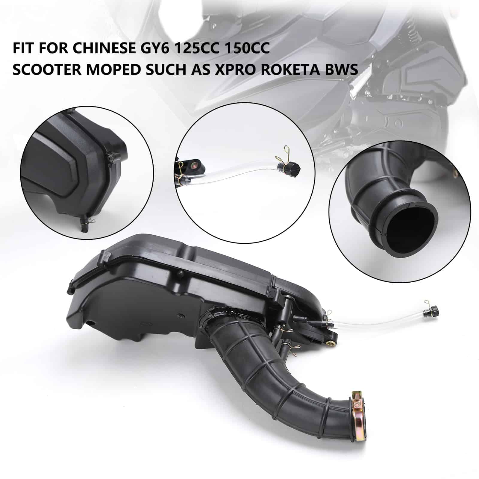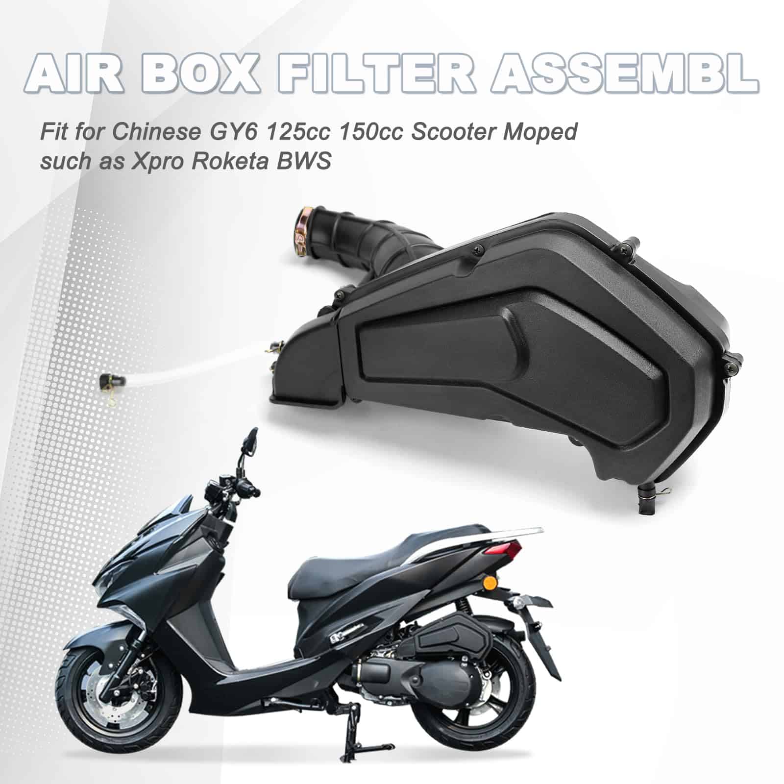 Filtro de aire Compatible con scooter Mopeds Tank X-Pro JMstar chinos de 4 tiempos de 125cc y 150cc GY6. Hecho de goma de alta calidad, viene equipado con un elemento de filtro seco incorporado que puede filtrar eficazmente impurezas del aire como polvo y partículas de arena, asegurando que el aire que entra en el cilindro esté limpio. El elemento del filtro de aire seco está hecho de papel de filtro seco microporoso, lo que garantiza una alta eficiencia de filtración y es conveniente para el reemplazo y mantenimiento. Incluye 1 filtro de aire. Por favor, compare su pieza actual con las imágenes del producto para confirmar que esta es la pieza de reemplazo correcta para el modelo de su vehículo. Si tiene alguna pregunta sobre nuestros productos, no dude en contactarnos antes de realizar su compra. Responderemos en un plazo de 24 horas.