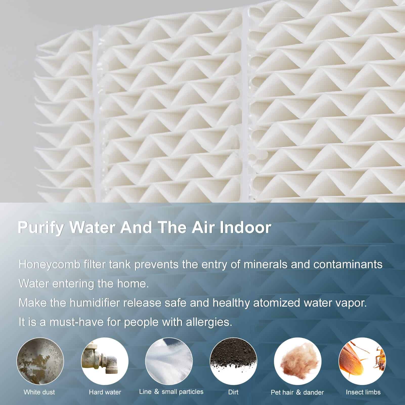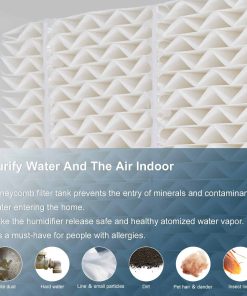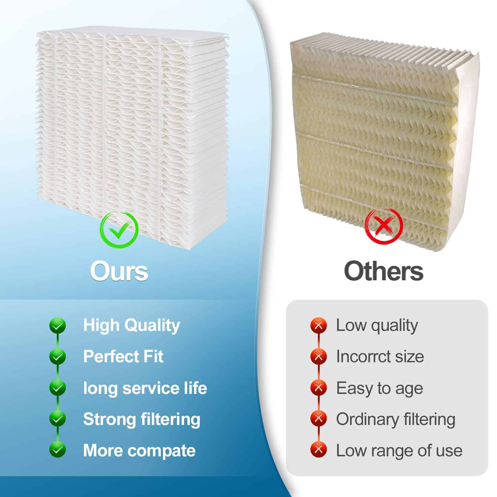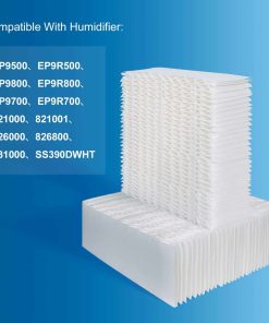 El filtro de almohadilla para humidificador 1043 (Versión Mejorada) es perfectamente compatible con los modelos de humidificadores de aire aircare, bemis, essick air: EP9500, EP9R500, EP9800, EP9R800, EP9700, EP9R700, 826000, 826800, 831000, SS390DWHT, 821000, 821001 y otros. Este filtro de humidificador 1043 mejorado para aircare está hecho de materiales premium y respetuosos con el medio ambiente, que no se estropeará después de un uso prolongado y no producirá ningún olor. Coincide con el estándar original y no hace ninguna clase de recortes. El filtro de almohadilla 1043 adopta una estructura progresiva de varias capas, que puede purificar desde grueso hasta fino de alta frecuencia, bloqueando eficazmente partículas y minerales duros en el agua dura y evitando que el polvo blanco entre en el aire interior, evitando eficazmente la contaminación secundaria del humidificador. (Eficiencia: 99,8%, Resistencia: 30Pa) La baja resistencia al viento puede reducir eficazmente el consumo de energía y reducir el ruido. Son una versión de vida extendida que es más del 150% más resistente que los filtros de humidificador estándar. Recomendamos reemplazar el filtro cada 2-3 meses para un rendimiento óptimo (dependiendo de su uso). Es bastante fácil instalar el filtro de humidificador 1043, no se necesitan herramientas, solo le costará unos minutos. Simplemente ejecute el humidificador sin agua. Retire la parte superior, hay un marco que necesita retirar. Retire la almohadilla vieja, reemplácela por una nueva, coloque el marco en la almohadilla.