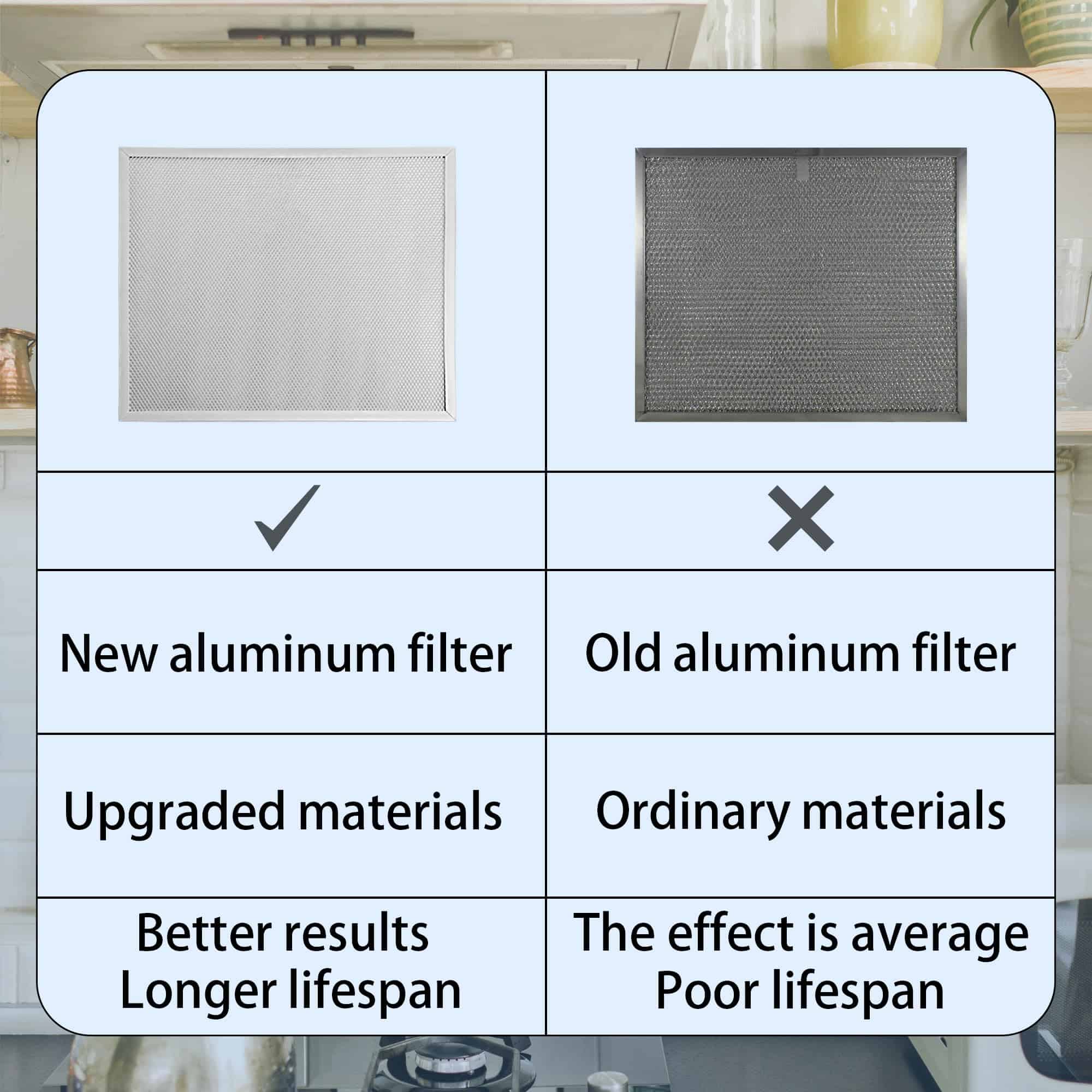 4. Amplia Compatibilidad: Nuestros filtros pueden reemplazar varios modelos de 30″, incluidas las campanas extractoras QS1, WS1 y WS2-30″ de Broan, y Sears 5260. Para confirmar aún más si el filtro es compatible con su modelo específico de campana extractora, nuestro servicio al cliente siempre está a su disposición.
