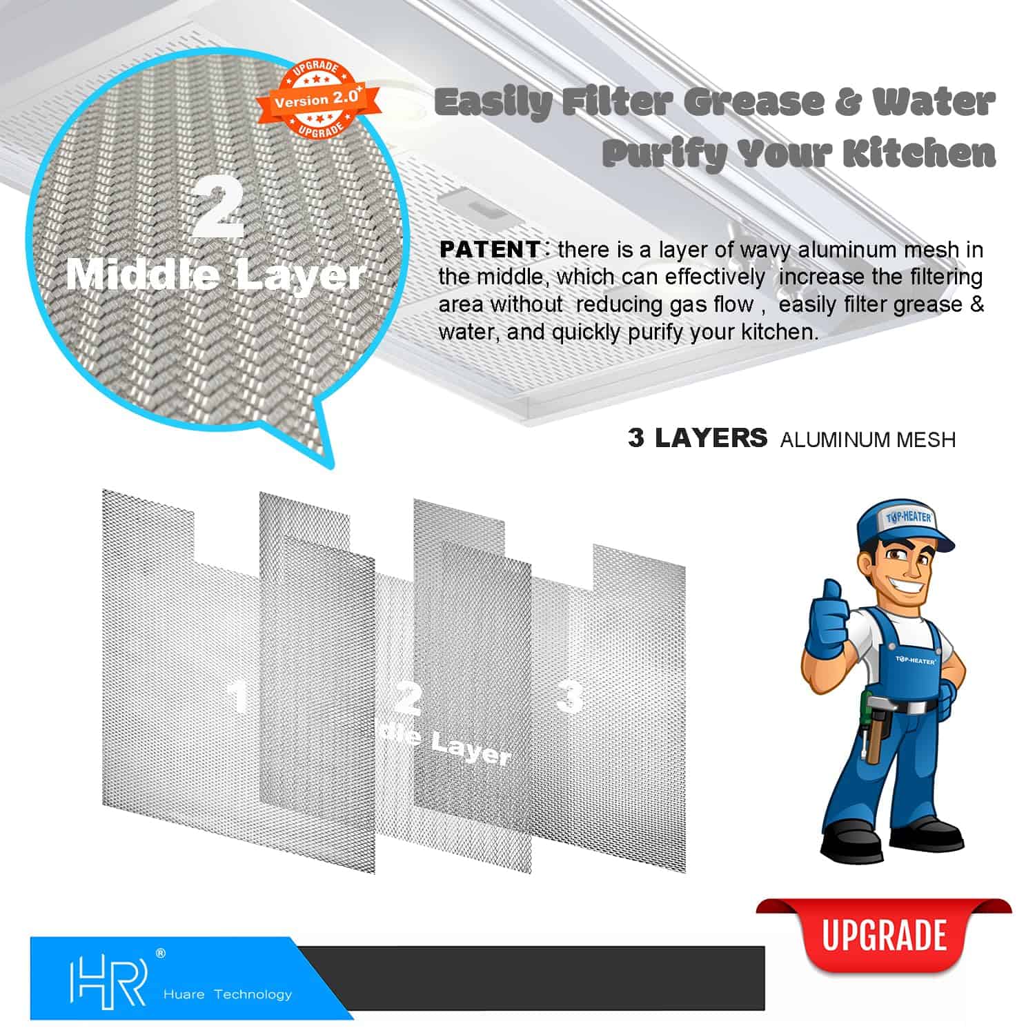 Este filtro de grasa está hecho de aluminio de alta calidad, tejido de alambre metálico de 3 capas aumenta el área de unión, lo que puede absorber de manera efectiva más grasa y limpiar el aire. Como fabricante profesional con más de 30 años de experiencia en la industria de filtros de campana, hemos fabricado una gran cantidad de productos para América del Norte de acuerdo con los requisitos de diferentes clientes, y somos altamente reconocidos por proporcionar productos de alta calidad. Recibirá 2 piezas de filtros de grasa para campana extractora de 8x7x0.35 pulgadas, 2 paquetes 100% nuevos. Ofrecemos garantía posventa del 100%.