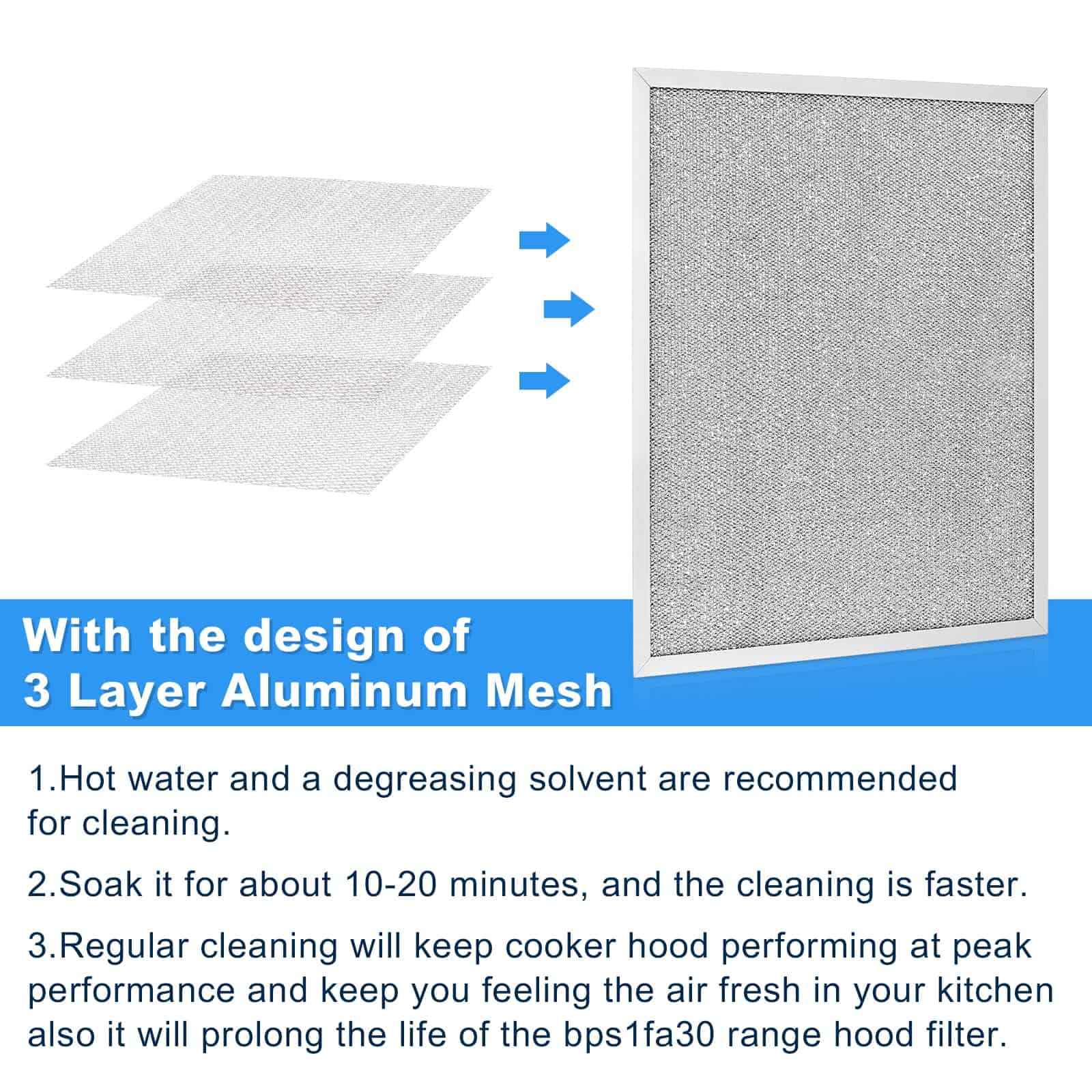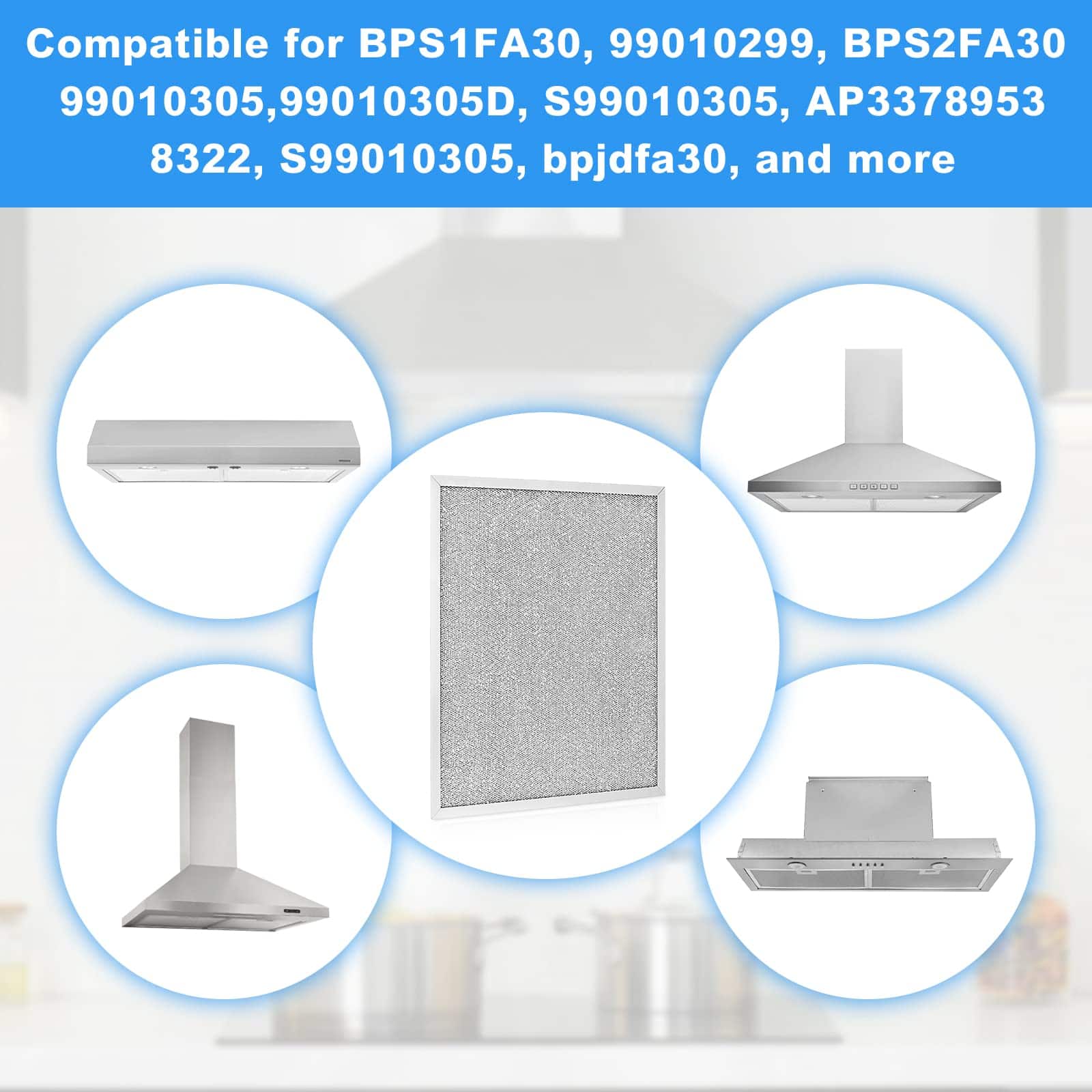 Especificaciones del artículo: – Accesorios para campana extractora. – Paquete contiene 2 filtros. Filtro de campana extractora de aluminio modelo 99010299 de Broan Nutone, Este filtro (NO OEM) está fabricado para reemplazar el filtro de Broan Nutone 99010299. Este filtro mide aproximadamente: 11-13/16 X 14-9/32 X 11/32, incluye una pestaña de extracción en el lado largo del filtro. Descripción del producto: Filtro para campana BPS1FA30 – Compatible con Broan Allure QS1, NuTone Allure WS1, y Sears 5260 – Serie de 30″. Incluye una pestaña de extracción central en el lado largo del filtro para facilitar su remoción. Reemplaza a Broan, Nutone número de pieza 99010299E S99010308 / 99010308. También reemplaza a GE WB02X10709 T. Atributos de la pieza Broan-Nutone: Contiene una almohadilla de papel de aluminio entre dos piezas de aluminio expandido. Uso: Este filtro de aluminio lavable se utiliza en campanas extractoras con y sin ducto, así como en hornos de microondas, para eliminar la grasa del aire. Mantenimiento: Recomendamos que el filtro se lave tan a menudo como sea necesario para evitar la acumulación de grasa y una disminución resultante en el flujo de aire. Remoje en una solución de agua caliente y desengrasante durante 10-20 minutos. Agite suavemente para eliminar la grasa ablandada. Es aceptable que quede residuo de grasa en el filtro después del lavado, ya que esto ayuda a retener la grasa. – Ayuda a que su campana extractora funcione a un rendimiento óptimo.