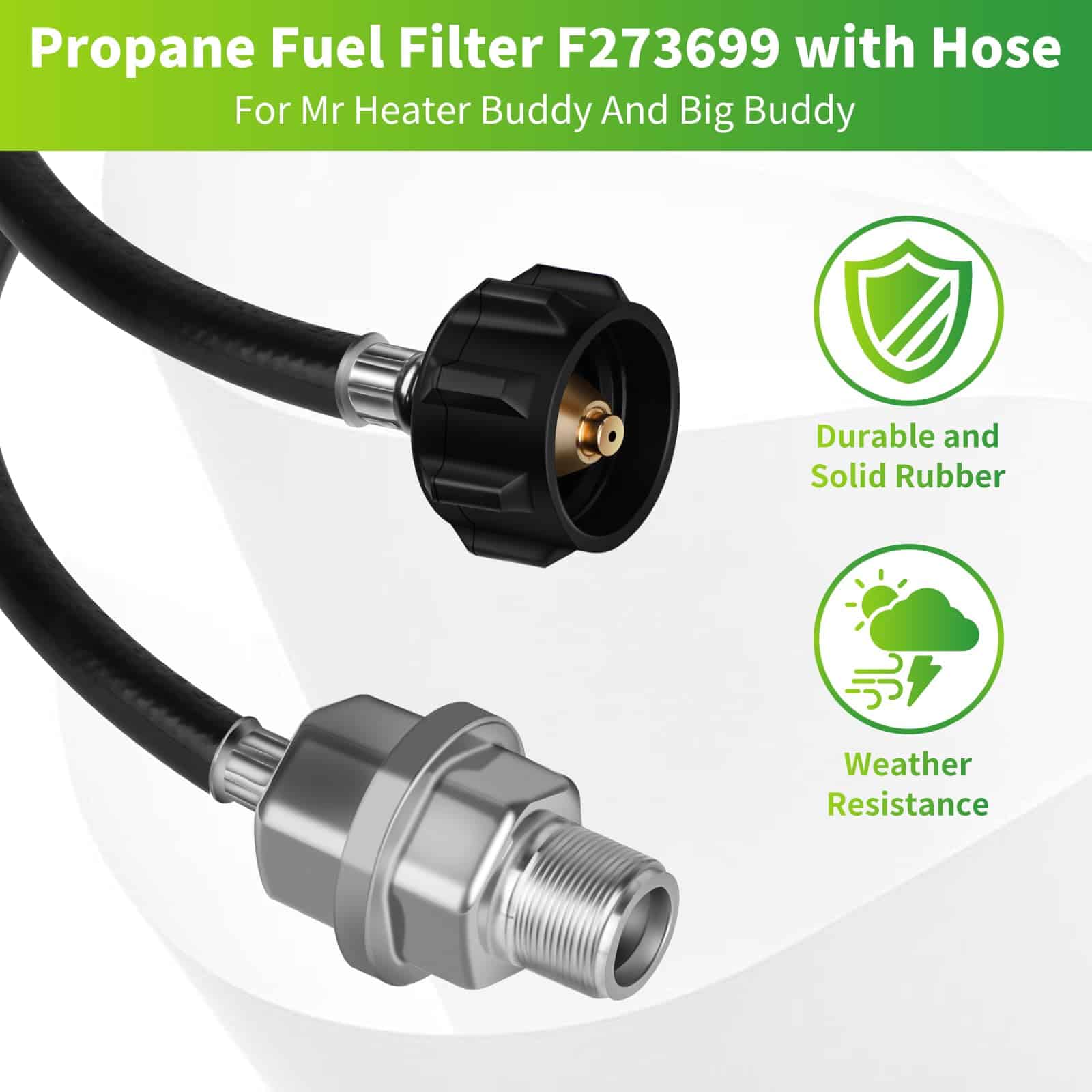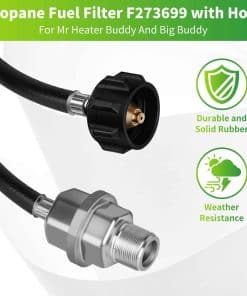 Premium Filtration Efficiency: Our propane fuel filter with hose is designed to provide superior filtration, effectively removing impurities and contaminants from your propane fuel. This ensures a cleaner burn, which extends the life of your propane appliances and enhances their performance, offering you the reliability you need for any outdoor or camping adventure. Durable and Long-lasting Construction: Crafted from high-quality materials, this propane fuel filter and hose are built to last. The robust design withstands harsh outdoor conditions, ensuring long-term durability and reliability. Whether you’re using it for a grill, heater, or stove, this filter hose will handle the demands of frequent use with ease. Universal Compatibility: Designed for versatility, our propane fuel filter with hose fits a wide range of propane-powered appliances. The standard fittings make it compatible with most propane tanks and equipment, providing you with a hassle-free connection and peace of mind knowing it will work seamlessly with your existing setup. Enhanced Safety Features: Safety is our top priority. This propane fuel filter with hose is equipped with advanced safety features to prevent leaks and ensure secure connections. The reinforced hose and high-quality filter materials offer reliable performance, reducing the risk of gas leaks and ensuring a safe environment for you and your family. Easy Installation and Maintenance: Featuring a user-friendly design, our propane fuel filter with hose allows for quick and easy installation without the need for special tools or professional help. The filter is also easy to clean and maintain, ensuring that your propane appliances continue to operate at peak efficiency with minimal effort on your part. Enjoy the convenience and peace of mind that comes with a well-maintained propane system.