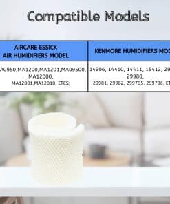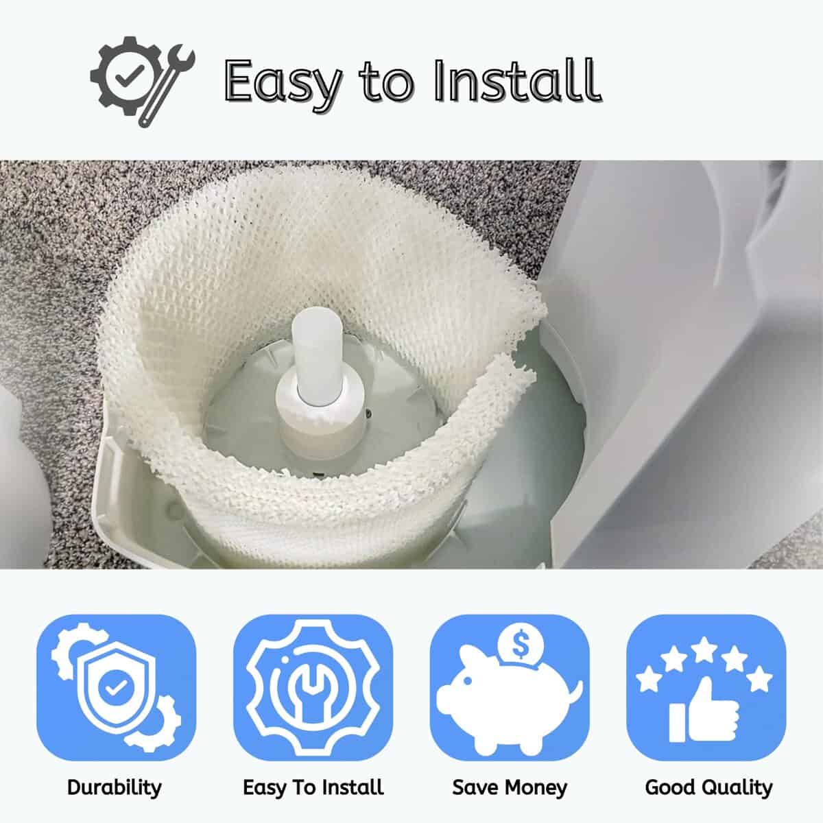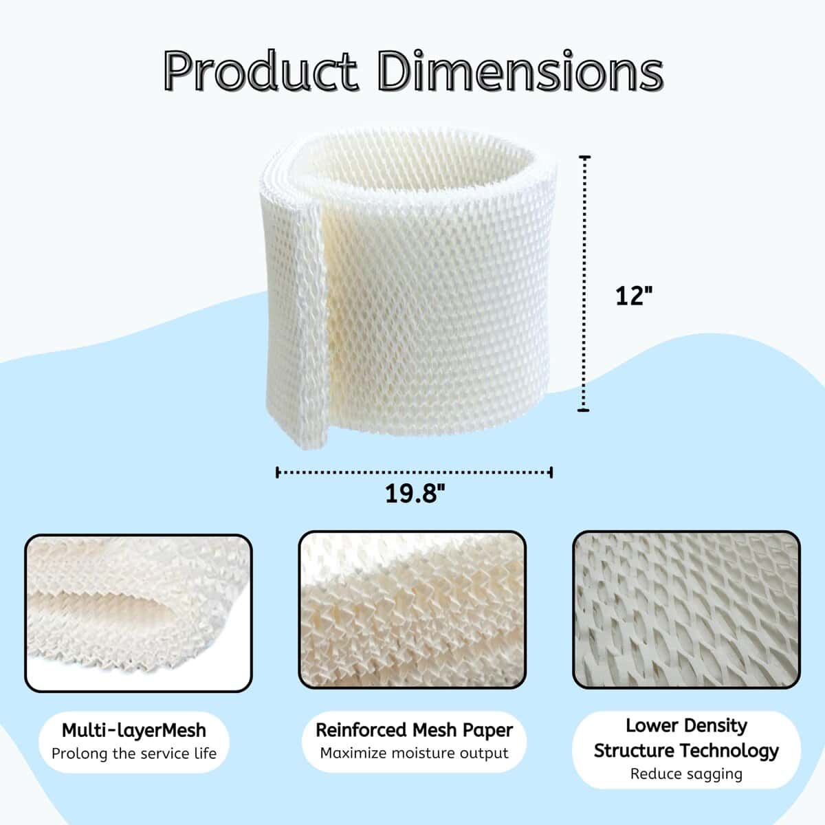 Un filtro de mecha premium diseñado por Nispira para humidificadores. El filtro de mecha para humidificador de reemplazo cuenta con un diseño de malla reforzada premium que captura eficazmente minerales duros en el agua, evitando que el polvo blanco circule en el aire interior. La tecnología de vanguardia mejora la absorción y la salida de humedad, aumentando la eficiencia y creando un ambiente fresco y confortable. Esto reduce el impacto de la garganta seca, la piel seca y otras molestias relacionadas. Incluye 2 filtros, Dimensiones: 7.5» x 1.2» x 30». Consejo: Utilice agua destilada para obtener los mejores resultados y reemplace los filtros cada 2-3 meses, dependiendo del uso.