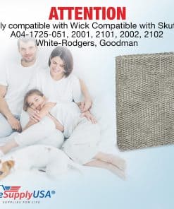 1. Compatibilidad extensa: Filtro evaporador de reemplazo con mecha compatible con los modelos de Skuttle A04-1725-051, 2001, 2101, 2002, 2102, así como humidificadores White-Rodgers y Goodman.
