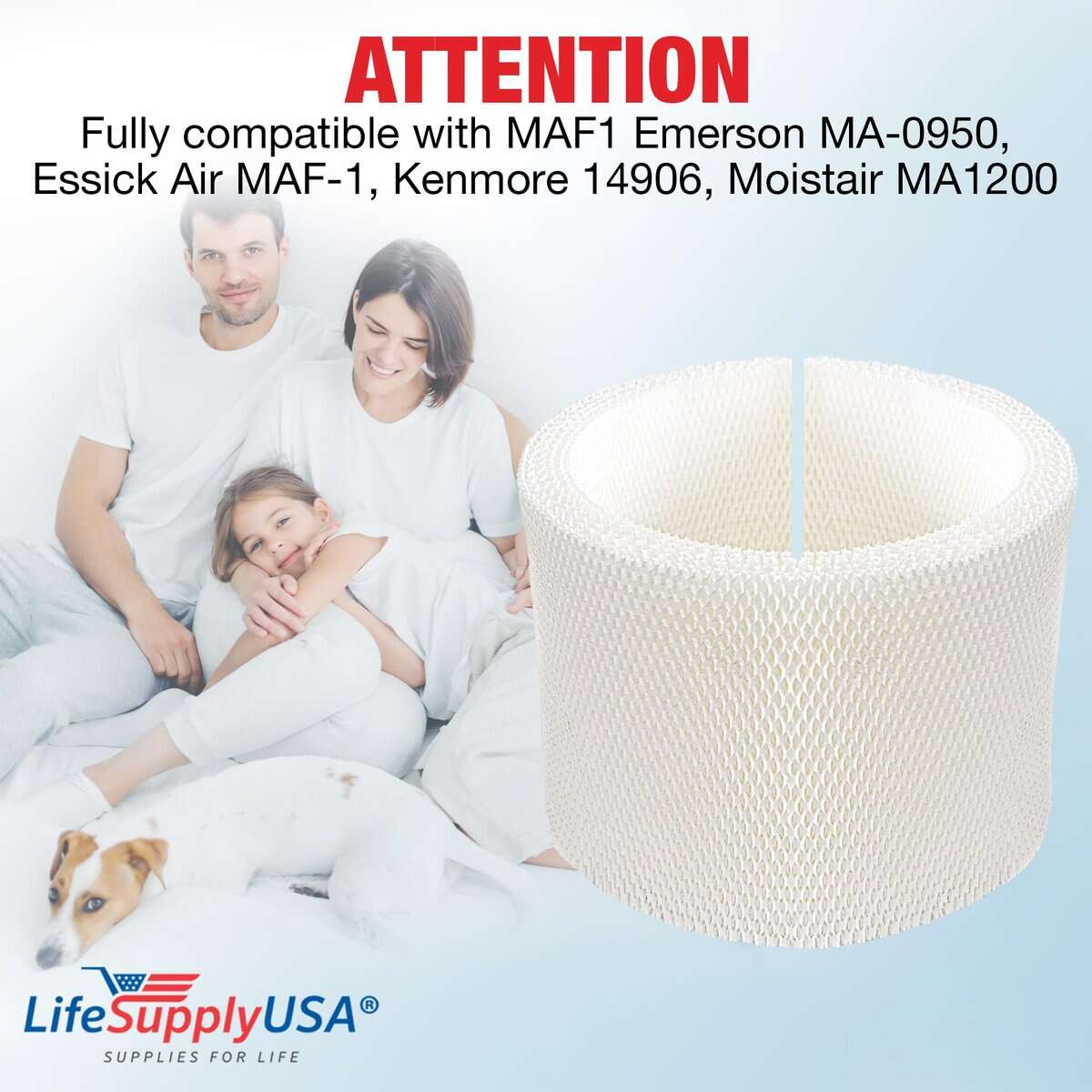 1. Extensa compatibilidad: Reemplazo compatible con los humidificadores MAF1 Emerson MA-0950, Essick Air MAF-1, Kenmore 14906 y Moistair MA1200.