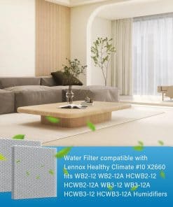 Filtro Sxkxm compatible con Lennox Healthy Climate 10 X2660 (2 Pcs) Tipo: Pad de Humidificador Color: Blanco Código de Parte X2660 Función de uso del producto Distribuye la humedad de manera más uniforme y completa en toda su casa para brindar los beneficios completos de su humidificador de casa, Cambie dos veces al año para maximizar la efectividad de su humidificador, Compatible con los modelos de Lennox WB2-12 WB2-12A HCWB2-12 HCWB2-12A WB3-12 WB3-12A HCWB3-12 HCWB3-12A serie de Humidificadores