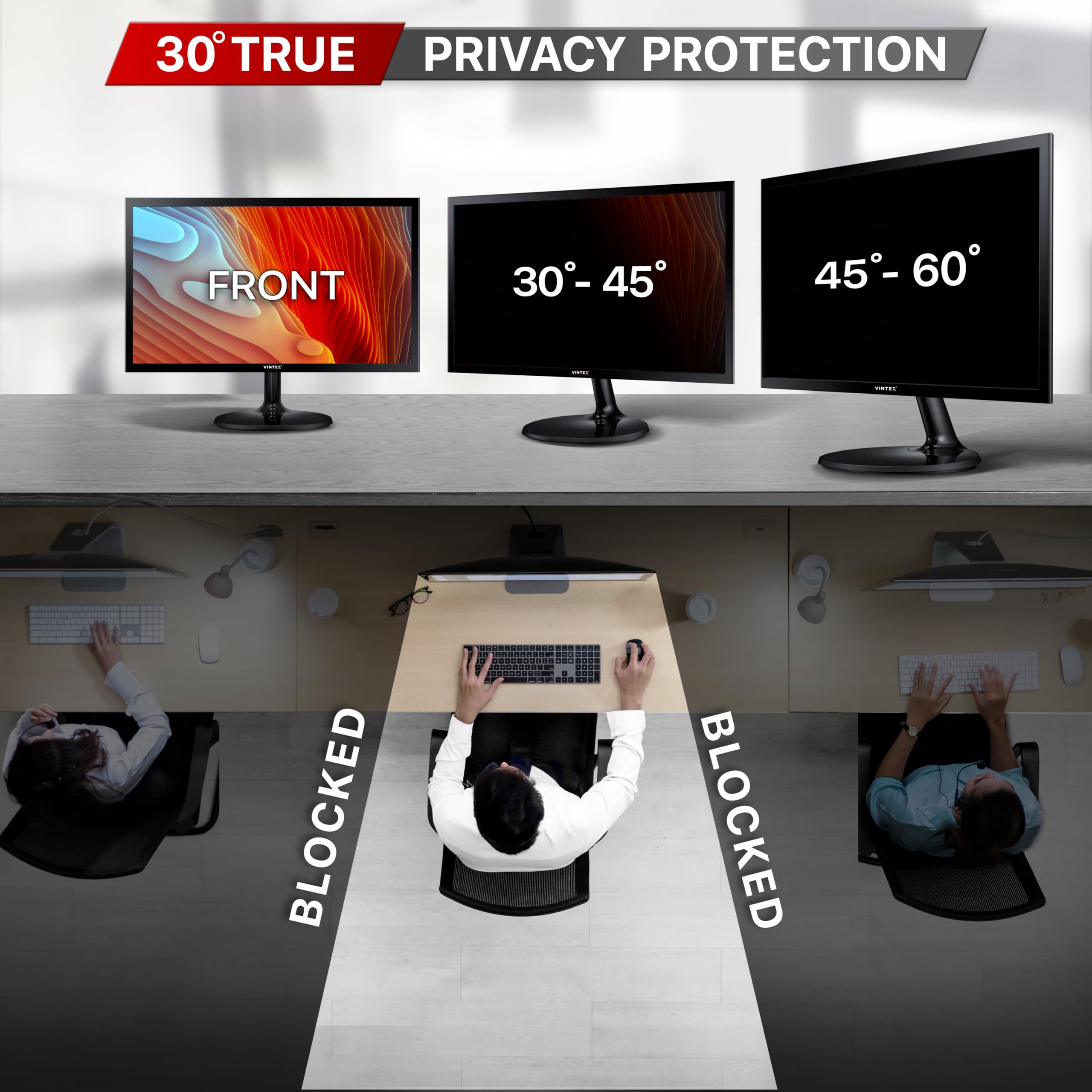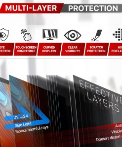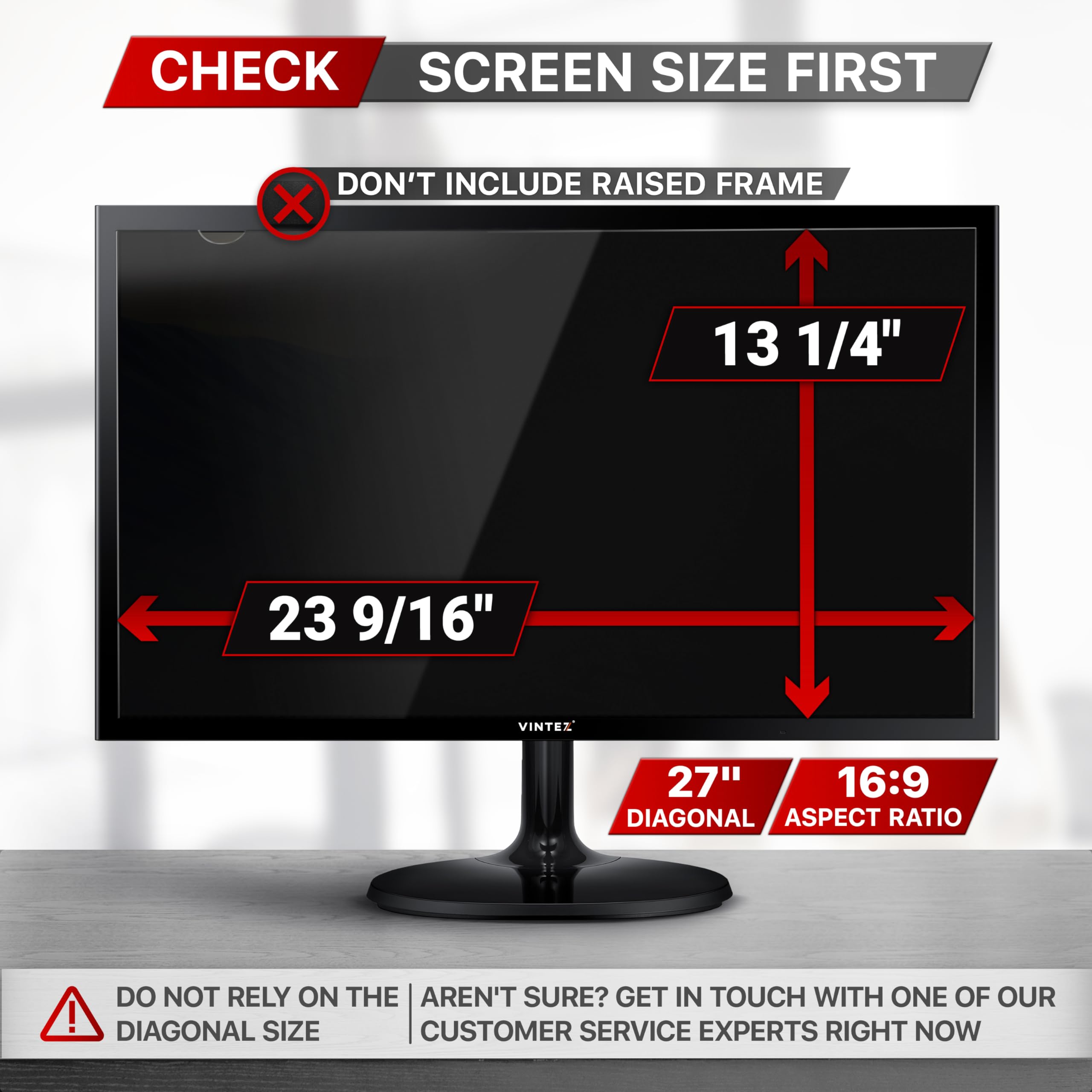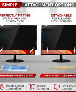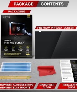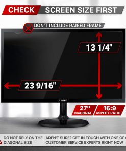 ¿A menudo tiene que preocuparse por realizar tareas cotidianas en su computadora solo porque teme que mucha gente se entrometa o mire furtivamente en la pantalla de su escritorio? ¿Duda al ingresar las contraseñas o leer/ver/navegar contenido en su escritorio que corresponde a un entorno de oficina pero aún así no quiere que otros sepan al respecto? Pruebe el filtro de pantalla de privacidad para computadora Vintez. – Restringe la visibilidad de la pantalla a la posición recta – Ayuda a mejorar la confidencialidad de su información, detalles de navegación, etc. y reduce el riesgo de cualquier hacking visual o robos visuales – Utiliza tecnología antirrayones, antirreflejos y también reduce la exposición de sus ojos a los rayos UV en un 96% y reduce la luz azul en un 65% – Origen de los materiales: Japón NOTA: Este filtro de privacidad está diseñado para su uso con monitores de escritorio LCD de 27 pulgadas que tienen una relación de aspecto de 16:9 (medida diagonalmente, de esquina a esquina sin el marco). Las dimensiones reales del filtro son 23 pulgadas de ancho por 13 pulgadas de alto (598 x 337 mm). Si no está seguro acerca del tamaño de la pantalla de su escritorio, simplemente busque el tamaño de la pantalla en la web usando el nombre/número del modelo o tome una cinta métrica y mida la pantalla diagonalmente, excluyendo el marco. CONTENIDO DEL PAQUETE: 1. Un filtro de privacidad de 27″ (relación de aspecto 16:9) con dimensiones de 23″ de ancho por 13″ de alto (598 x 337 mm) 2. Paño de limpieza de microfibra 3. Tiras de sujeción adhesiva ópticamente transparentes (Opción de instalación 1) 4. Pestañas de montaje deslizante (Opción de instalación 2) 5. Instrucciones de instalación 6. Kits de instalación extra (opción 1 y 2)