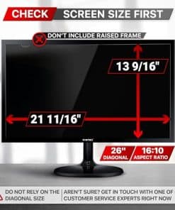 ¿Con frecuencia tiene que preocuparse por realizar tareas diarias en su computadora solo porque teme que mucha gente esté curioseando o husmeando en la pantalla de su escritorio? ¿Duda en ingresar las contraseñas o leer/ver/navegar contenido en su escritorio que corresponda a un entorno de oficina pero aún así no quiere que otros lo sepan? Pruebe el Filtro de Pantalla de Privacidad de Computadora de Vintez. – Restringe la visibilidad de la pantalla en la posición recta. – Ayuda a mejorar la confidencialidad de su información, detalles de navegación, etc., y reduce el riesgo de espionaje visual o robos visuales. – Utiliza tecnología anti-rayones, anti-brillo, y también reduce la exposición de sus ojos a los rayos UV en un 96% y la radiación de LF en un 99.9%. – Origen de los materiales: Japón. NOTA: Este filtro de privacidad está diseñado para su uso con monitores de escritorio LCD de 26 pulgadas que tienen una relación de aspecto de 16:10 (medido diagonalmente, de esquina a esquina sin el marco). Dimensiones reales del filtro Ancho: 21 11/16 pulgadas (551 mm), Alto: 13 9/16 pulgadas (344 mm). Si no está seguro acerca del tamaño de la pantalla de su escritorio, simplemente busque el tamaño de la pantalla en la web usando el nombre/número del modelo o tome una cinta métrica y mida la pantalla en diagonal, excluyendo el marco. CONTENIDO DEL PAQUETE 1. Un filtro de privacidad de 26″ (relación de aspecto 16:10) con dimensiones Ancho: 21 11/16 pulgadas (551 mm), Alto: 13 9/16 pulgadas (344 mm) 2. Paño de limpieza de microfibra 3. Tiras de sujeción de adhesivo ópticamente claro (Opción de instalación 1) 4. Pestañas de montaje deslizantes (Opción de instalación 2) 5. Instrucciones de instalación 6. Kits de instalación adicionales (opción 1 y 2).