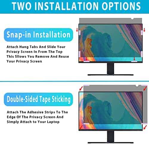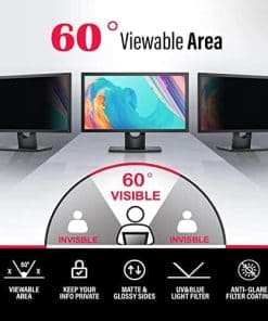Protéjase de miradas indiscretas y reflejos dañinos con el Filtro de Pantalla de Privacidad para Monitor de 24 Pulgadas. Con dimensiones de Ancho: 532mm, Altura: 299mm y Diagonal: 24 Pulgadas, este filtro de pantalla se adapta a marcas como HP, Dell, Samsung, Lenovo, LG, Acer, ASUS, ViewSonic y otros modelos de monitores. La instalación es rápida y sencilla, con dos opciones de montaje disponibles. La opción 1 utiliza tiras adhesivas transparentes para fijar el filtro a la pantalla, mientras que la opción 2 utiliza pestañas de montaje deslizantes para monitores con un bisel elevado. El filtro de película de varias capas garantiza una privacidad óptima al oscurecer la pantalla desde los lados, protegiendo sus ojos de los reflejos dañinos y la luz UV y azul. Ideal para viajes y entornos de trabajo abiertos, este filtro de pantalla de privacidad es perfecto para trabajadores móviles, viajeros de negocios y estudiantes. El paquete incluye el filtro de privacidad, tiras adhesivas, pestañas de montaje y un paño de limpieza de microfibra, proporcionando una solución integral para proteger sus datos y privacidad en cualquier lugar.