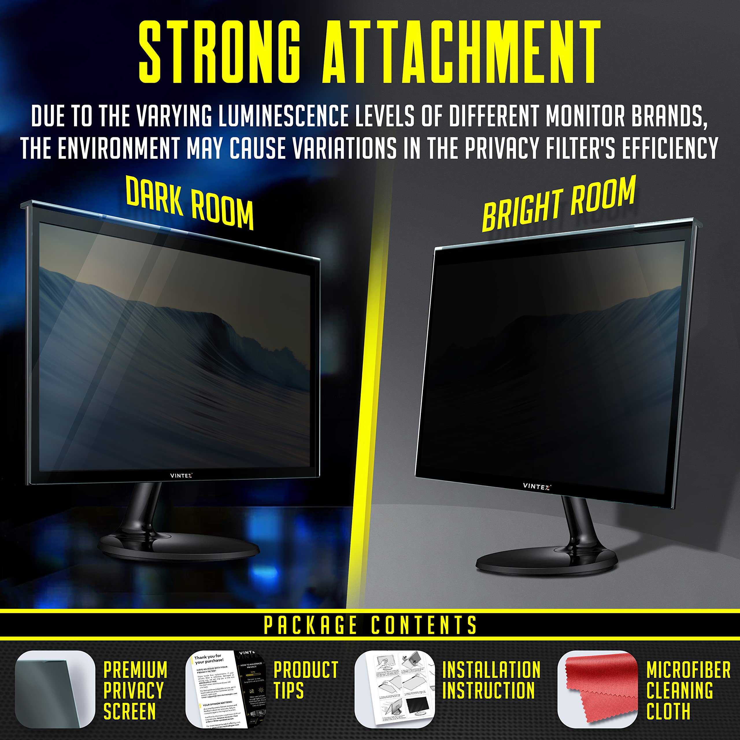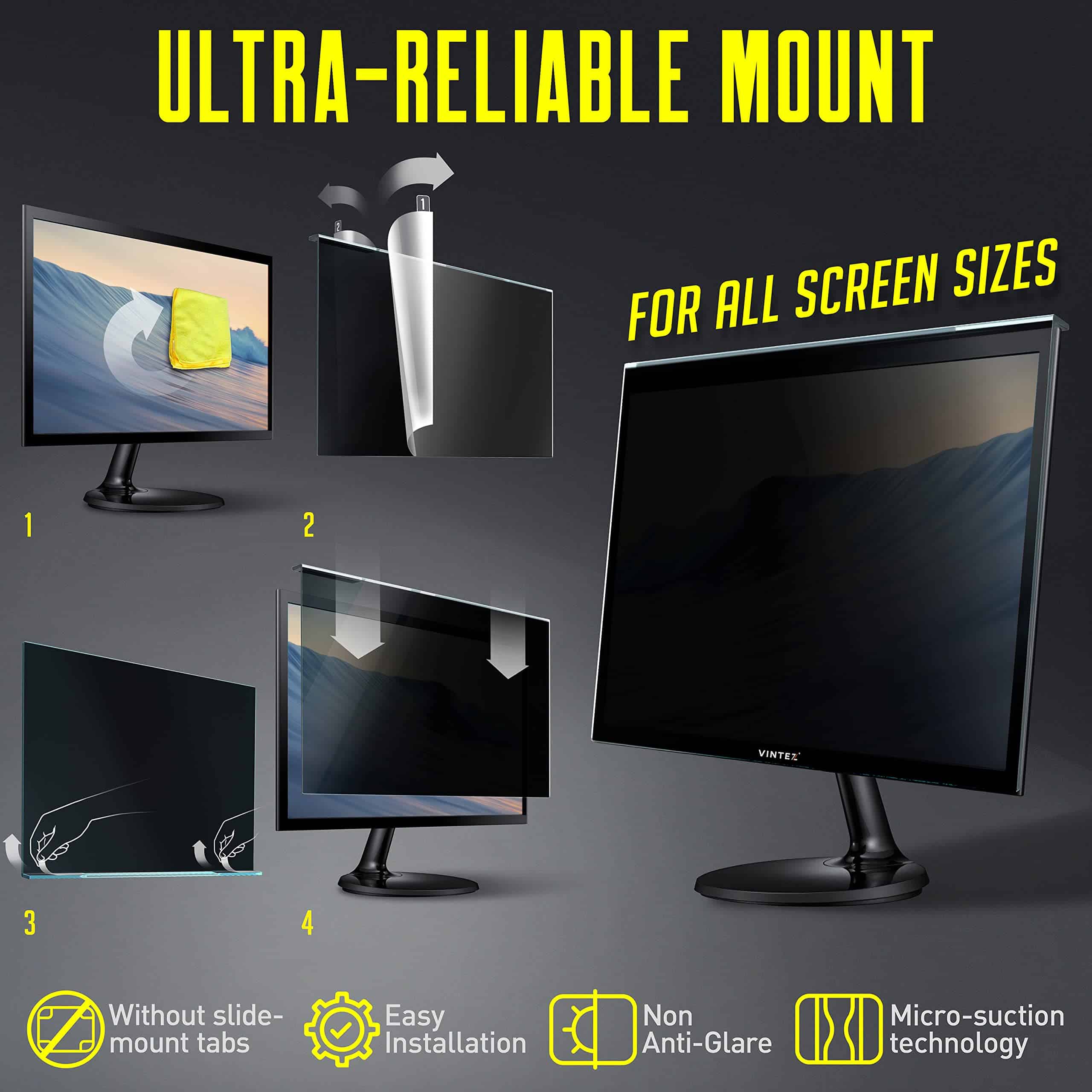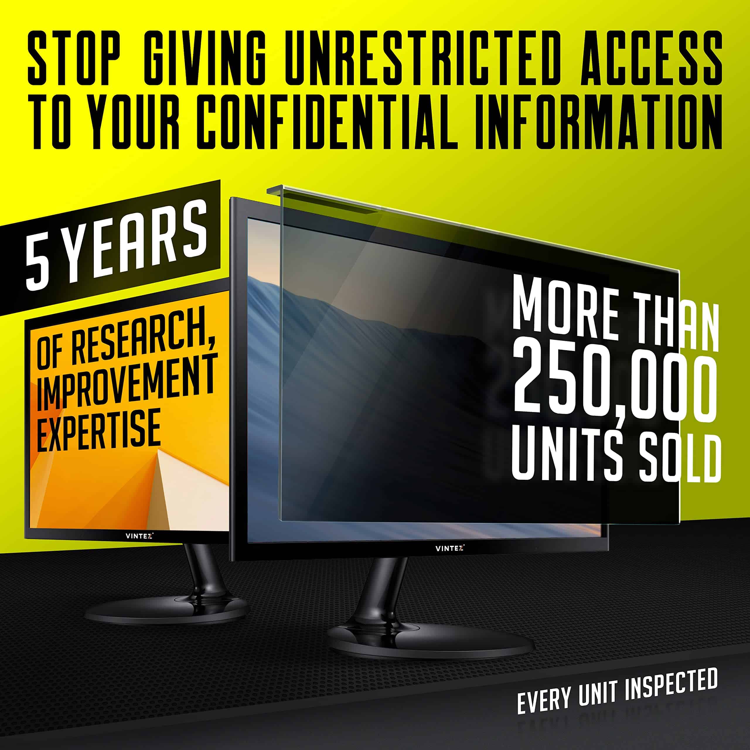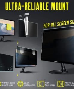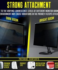 ¿Te preocupa a menudo tener que realizar tareas cotidianas en tu computadora solo porque temes que mucha gente mire o espíe tu pantalla de escritorio? ¿Dudas en ingresar las contraseñas o leer/ver/navegar contenido en tu escritorio que se ajusta a un entorno de oficina pero aún así no quieres que otros lo sepan? Prueba el Filtro de privacidad de pantalla de computadora de Vintez. – Restringe la visibilidad de la pantalla a la posición recta – Ayuda a mejorar la confidencialidad de tu información, detalles de navegación, etc. y reduce el riesgo de cualquier pirateo visual o robos visuales – Tecnología anti-rasguños, reduce la exposición de tus ojos a los rayos UV en un 96% y disminuye la luz azul en un 65% – Tecnología de microsucción en lugar de los kits de instalación – Origen de los materiales: Japón NOTA: Este filtro de privacidad está diseñado para su uso con monitores de escritorio LCD de 17.3 a 19 pulgadas (17.3″, 18.5″, 19″, 19.5) que tienen una relación de aspecto de 16:9/16:10. Tamaño real del filtro: Ancho: 440 mm, Altura: 290 mm. Si no estás seguro sobre el tamaño de tu pantalla de escritorio, simplemente busca el tamaño de pantalla en la web usando el nombre/número del modelo o toma una cinta métrica y mide la pantalla, excluyendo el marco. CONTENIDO DEL PAQUETE: 1. Filtro de privacidad de 17.3″ a 19″ (17.3″, 18.5″, 19″, 19.5) (relación de aspecto 16:9/16:10) con dimensiones de 440 mm de ancho x 290 mm de alto 2. Paño de limpieza de microfibra 3. Instrucciones de instalación