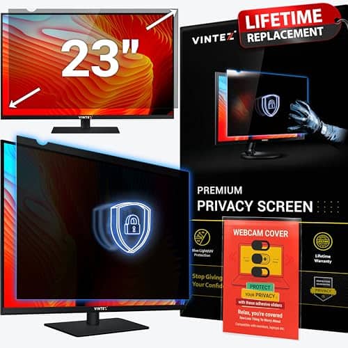 1. Privacidad mejorada: el filtro de pantalla de privacidad de Vintez es perfecto para áreas públicas y de alto tráfico. El filtro de privacidad negro de Vintez está diseñado para ser compatible con marcas de monitores como HP, Samsung, Dell, Lenovo, Acer, Asus, LG, ViewSonic y otras. Por favor, confirme las medidas de ancho y alto de su pantalla de computadora antes de hacer el pedido. Recomendamos no tomar una decisión basada únicamente en el tamaño diagonal de la pantalla de la computadora. 2. Pantalla oscura para los demás: vista clara para usted. El filtro de privacidad de la computadora hace que la pantalla parezca oscura cuando se ve desde un ángulo (el ángulo es alrededor de 30-60 grados), pero brillante cuando se ve directamente. Para cambiar el ángulo de privacidad de 60 a 30 grados, simplemente ajuste el nivel de brillo de su monitor. 3. Dimensiones del filtro de privacidad: si el área activa de su pantalla tiene las siguientes dimensiones: Ancho: 20 1/16 pulgadas (20.0 pulgadas / 509 mm), Alto: 11 5/16 pulgadas (11.3 pulgadas / 286 mm) – Relación de aspecto 16:9, entonces este filtro es bueno para usted. Contáctenos si tiene alguna pregunta sobre las dimensiones. 4. Sirve como protector de pantalla y de ojos: protege sus ojos filtrando el 96% de los rayos UV y reduciendo la luz azul en un 65%. Es un filtro de pantalla de privacidad reversible, que le brinda la flexibilidad de elegir un acabado brillante o mate. Elija mate para reducir el deslumbramiento externo. El filtro es antirreflejos y resistente a los arañazos. 5. Instalación fácil: incluye dos opciones fáciles de instalar: tiras de unión y pestañas de montaje deslizantes. El paquete contiene kits de instalación adicionales. Garantizamos que todos los filtros de pantalla tienen una calidad del 100% debido a la verificación manual. Política de reemplazo de por vida: su filtro de privacidad de la computadora está protegido por nuestra política de reemplazo de por vida y si sucede algo, le enviaremos un nuevo filtro de privacidad sin costo alguno. Puede relajarse sin preocupaciones, sabiendo que puede contar con la ayuda de las Tecnologías Vintez.