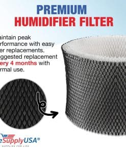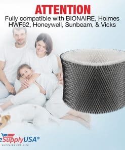LifeSupplyUSA ofrece un filtro de repuesto de alta calidad compatible con una variedad de humidificadores populares, incluidos BIONAIRE, Holmes HWF62, Honeywell, Sunbeam y Vicks. Este filtro presenta una extensa compatibilidad con varios modelos de humidificadores, lo que lo convierte en una opción versátil y conveniente para los propietarios de humidificadores.