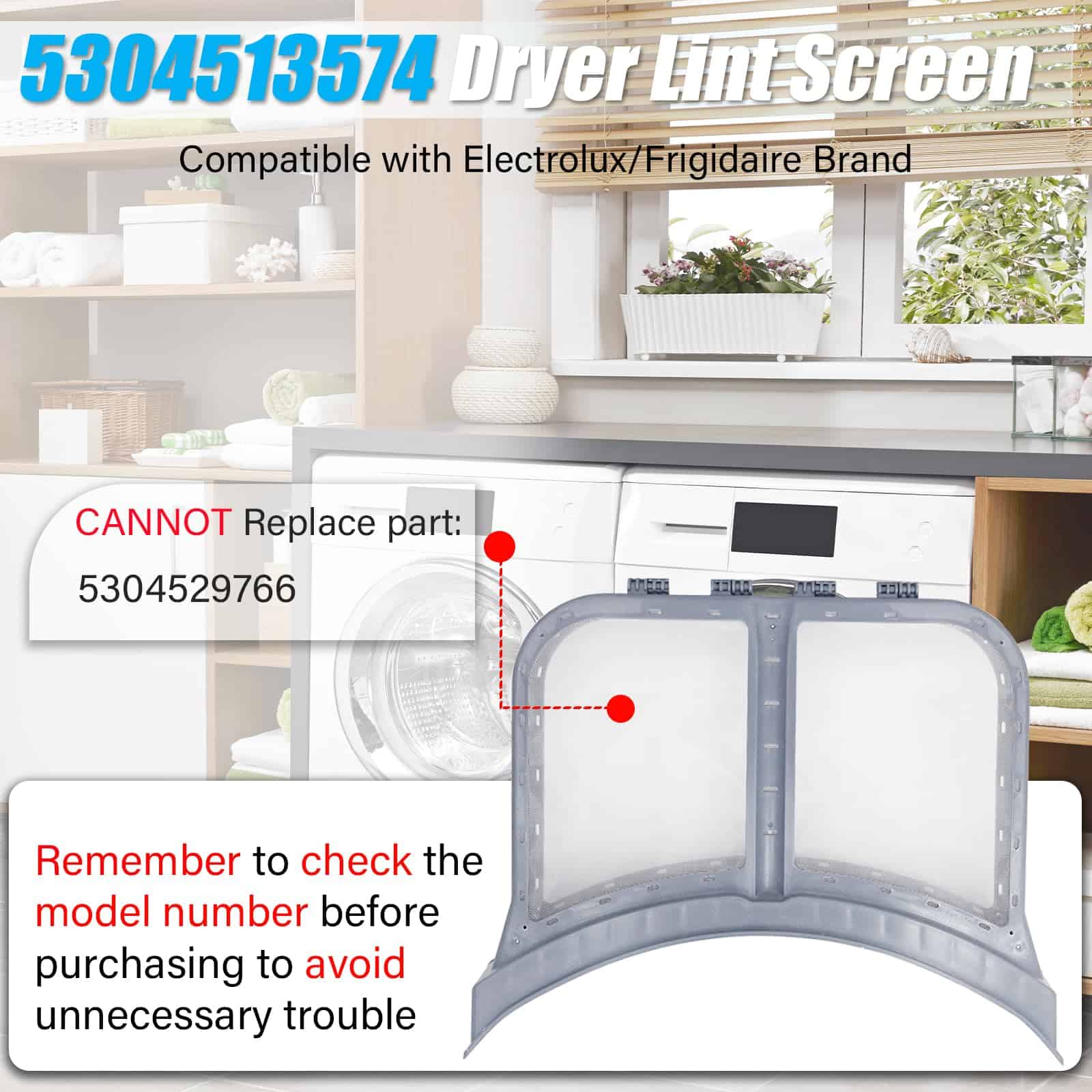 1. Número de parte de repuesto: 5304513574 pantalla de pelusa para secadora reemplaza el número de parte 5304513574; NO puede reemplazar el número de parte 5304529766.
