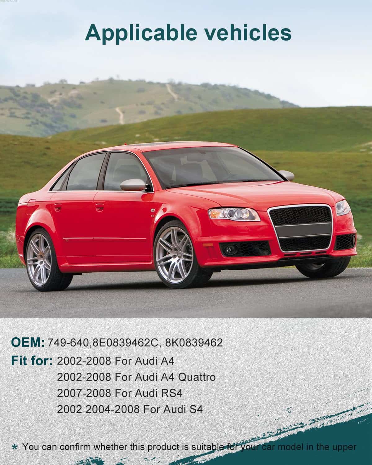 2. Reemplace para 2003-2008 para A4, 2007-2008 para RS4, 2004-2008 para S4,, Por favor confirme si el artículo es compatible con el modelo de su vehículo en la parte superior izquierda antes de comprar.