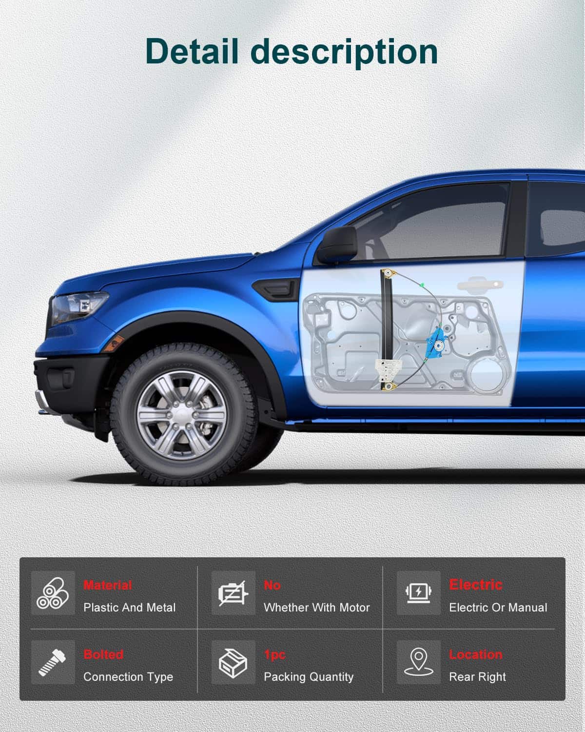 FINDAUTO Regulador de ventana eléctrico trasero -Azul