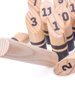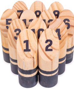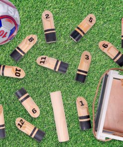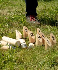 DERRÍBALOSFinska es uno de los juegos de césped más únicos que puedes encontrar hoy en día. Sus orígenes se remontan al principio del siglo XX cuando inmigrantes de la provincia de Carelia vinieron a Finlandia después de un período de agitación civil. Con ellos trajeron Kyykka. Durante los años 90, se creó una versión más pequeña y portátil del juego y se conoció como Finska. La versión actual del juego ha sido disfrutada por familias de todo el mundo durante más de veinte años. ¡Ahora puedes unirte a la diversión y aprender este juego exclusivo de césped que es divertido para toda la familia! Configura los bolos según cómo se ven en la parte trasera de las instrucciones, coloca el Finska horizontalmente en tu mano e intenta derribar los bolos. Sin embargo, hay algunos trucos interesantes en este juego que lo separan de otros juegos como los bolos. Si derribas un solo bolo, obtienes el valor de puntos marcado en ese bolo. ¡Si derribas varios bolos, tu valor de puntos es el de la cantidad de bolos que derribaste! ¡El primer jugador en anotar exactamente cincuenta gana!Porqué te Encantará Este set de Finska está hecho con cortes seguros y naturales de madera. El set incluye 12 Bolos, un Finska, Instrucciones de juego y una caja de madera para llevar Finska contigo a donde sea que vayas!
